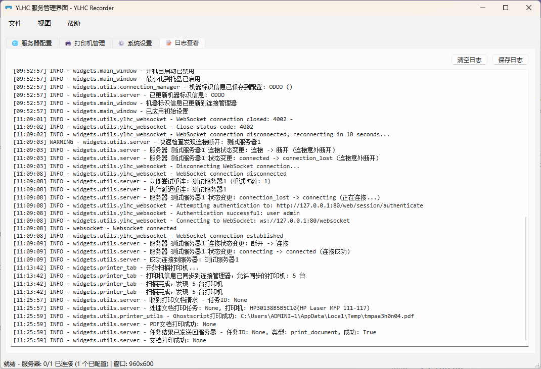 客户端连上以后,会自动同步本地打印机信息到服务器,服务端效果如下