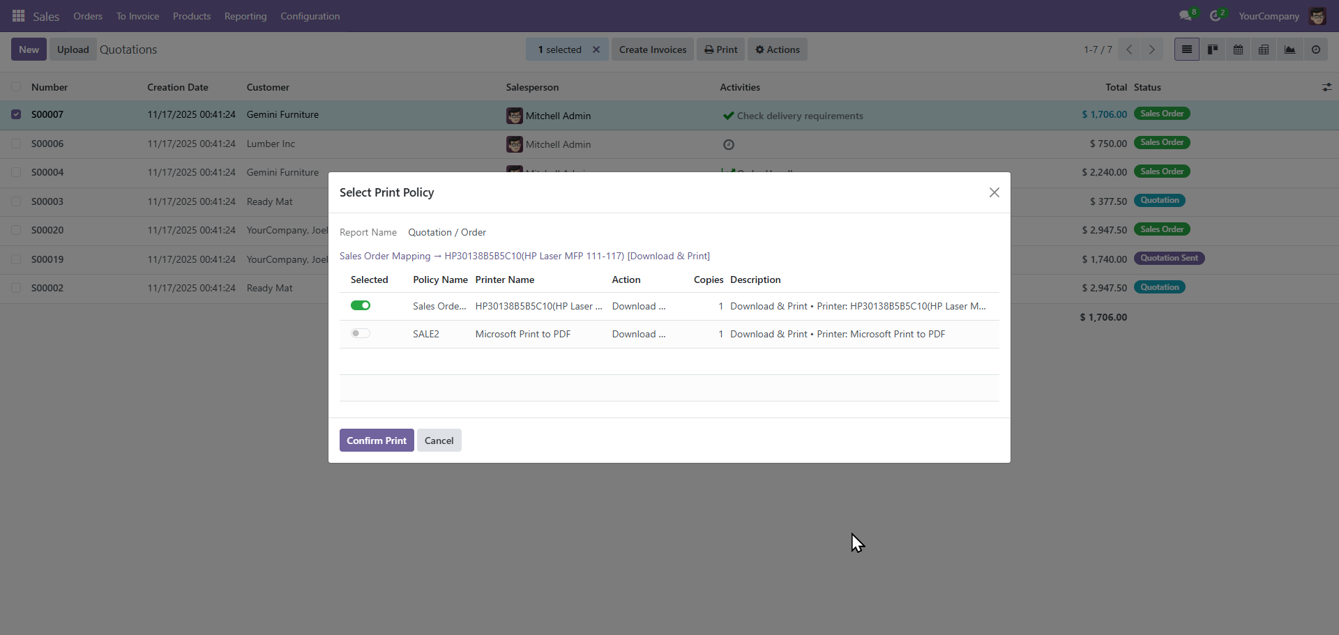 如果存在多个绑定时,会弹出对话框让用户选择具体的打印机