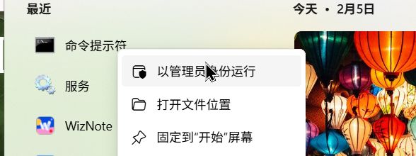 2、打开cmd,注意,添加管理员权限。
