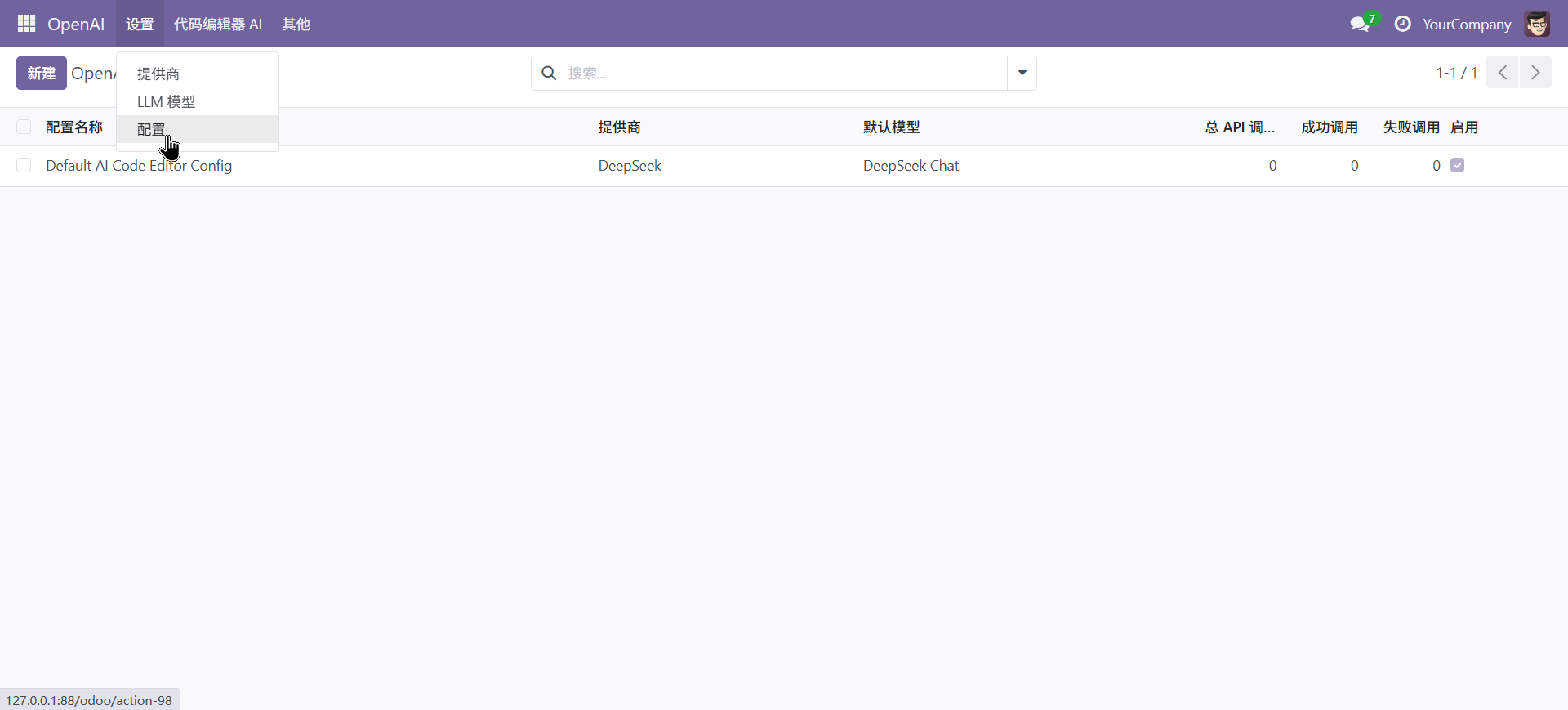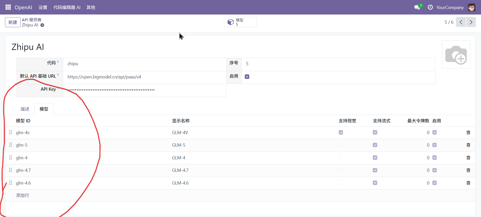 注意看下模型里边有没有要使用到的模型,如果没有自行添加。设置好模型提供商以后还需要创建一个配置,用于配置到底使用哪个供应商及模型和相关参数
