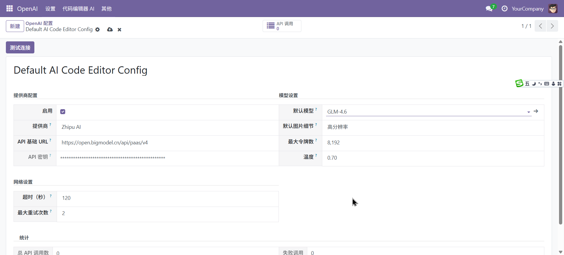 安装完成以后,还需要一定配置,由于引入了ai,所以先要进行相关配置(特别说明,使用ai为建议项,并非强制项),打开open ai菜单(需要管理员权限,管理员才能进行配置)