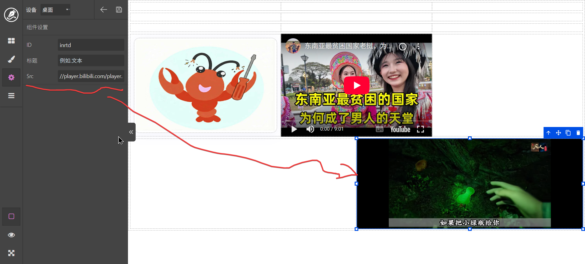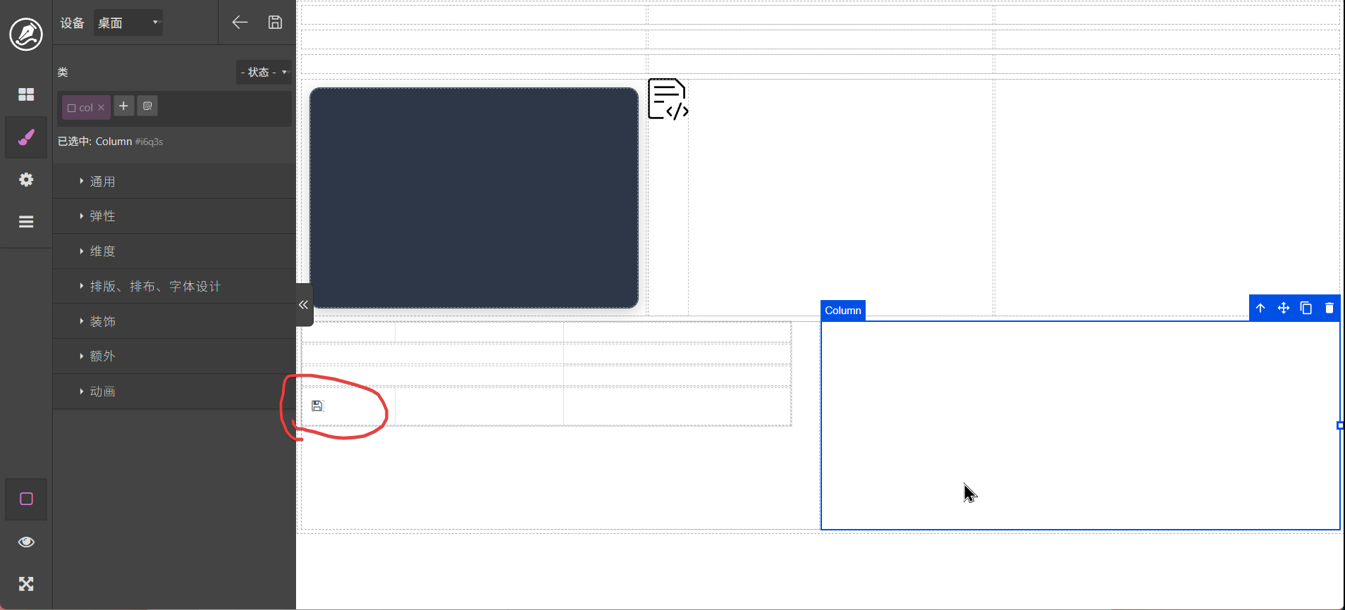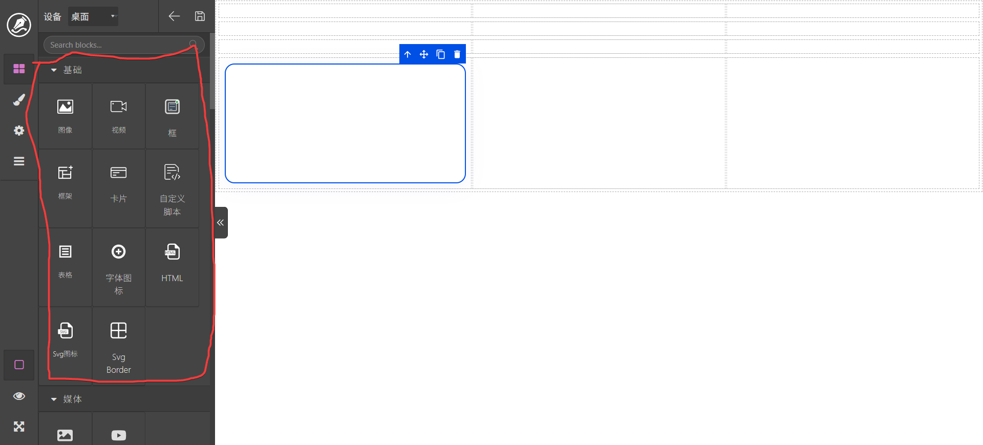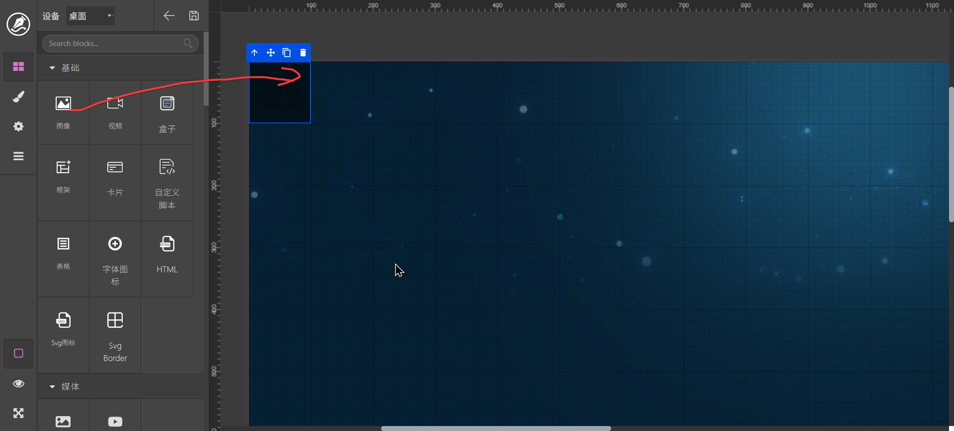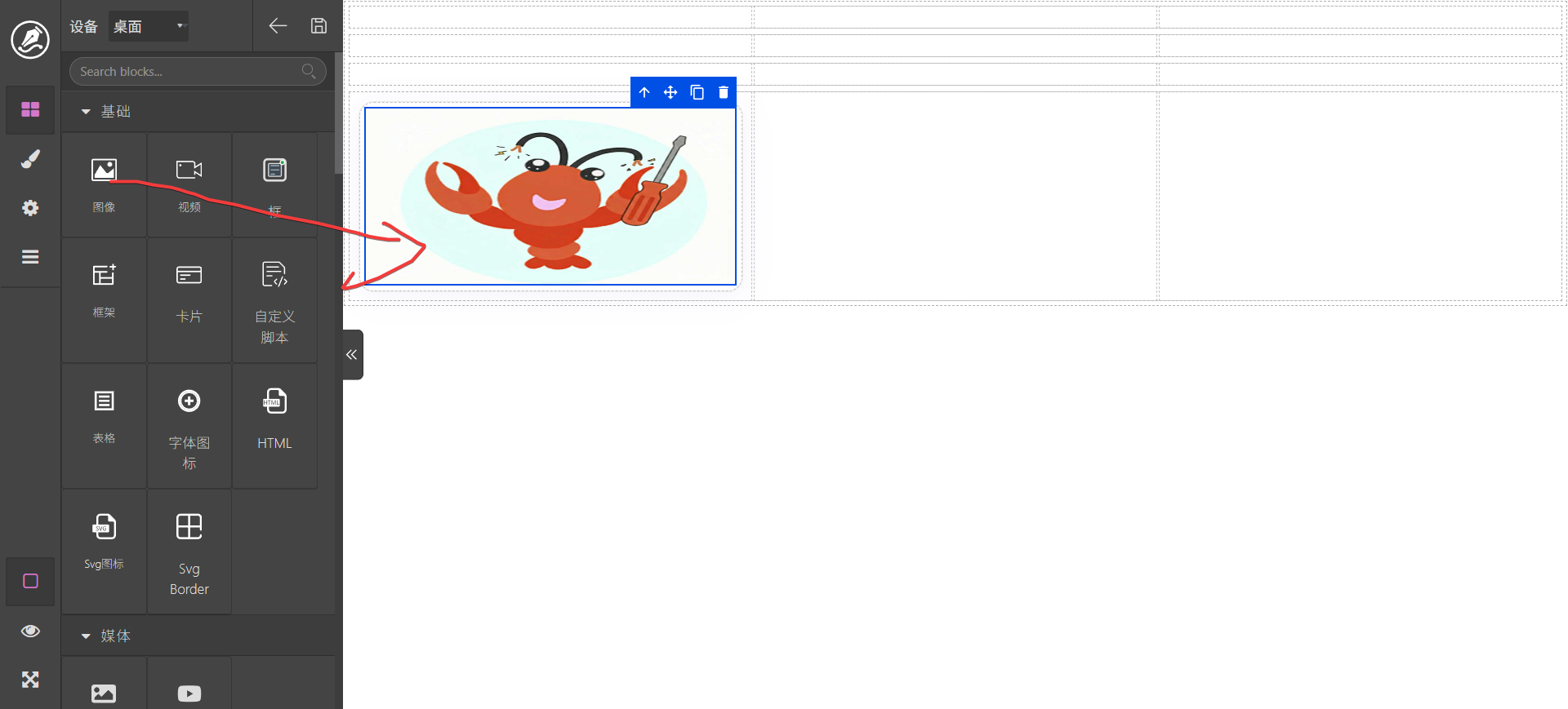 区块中的元素拖动后到编辑区域