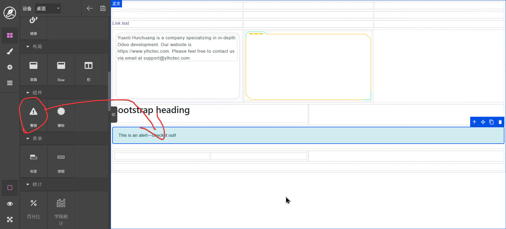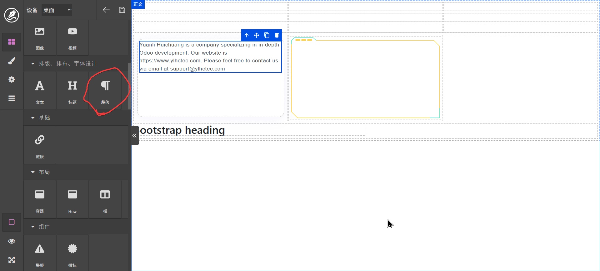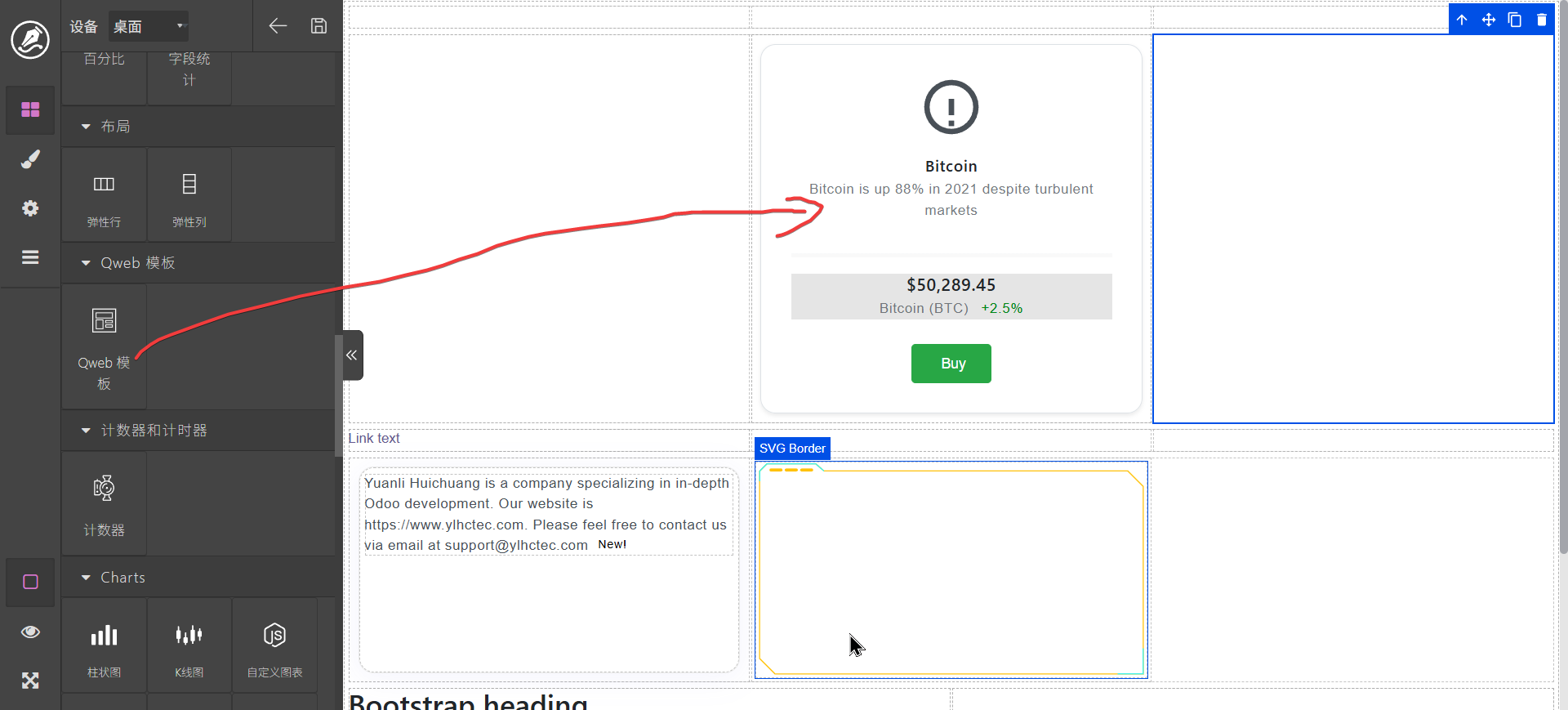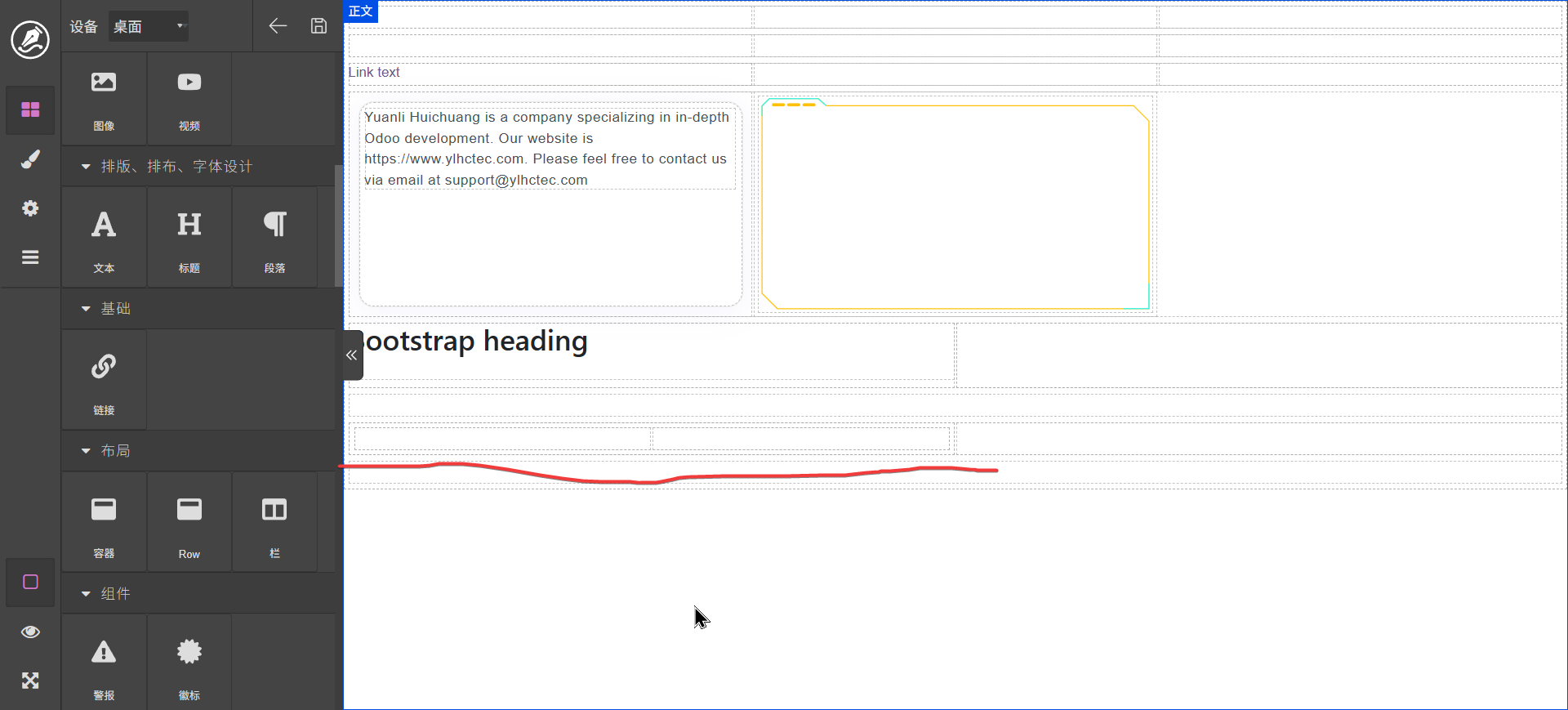 双击文字标签可以进行编辑,content区域可以拖动其它元素
