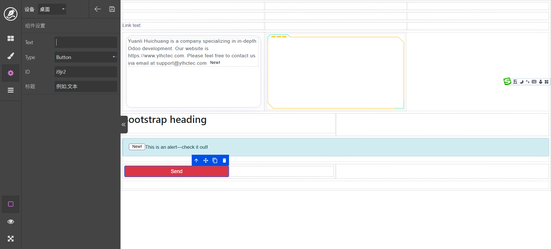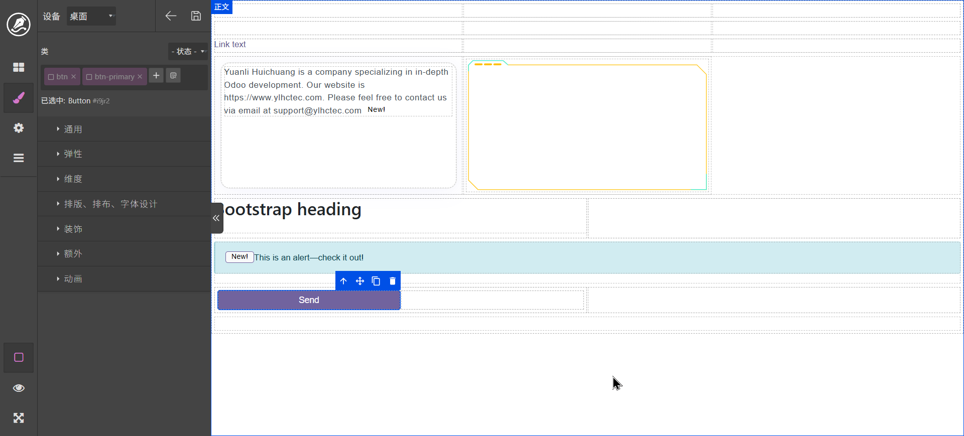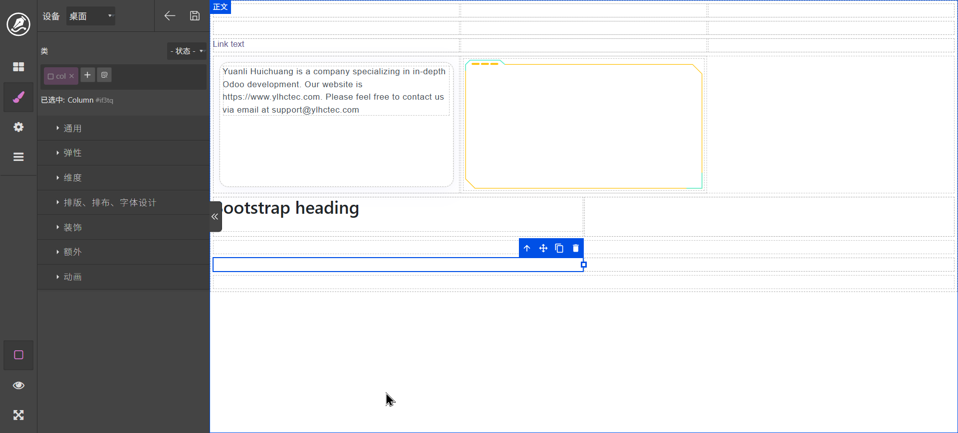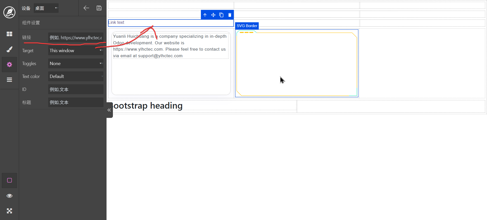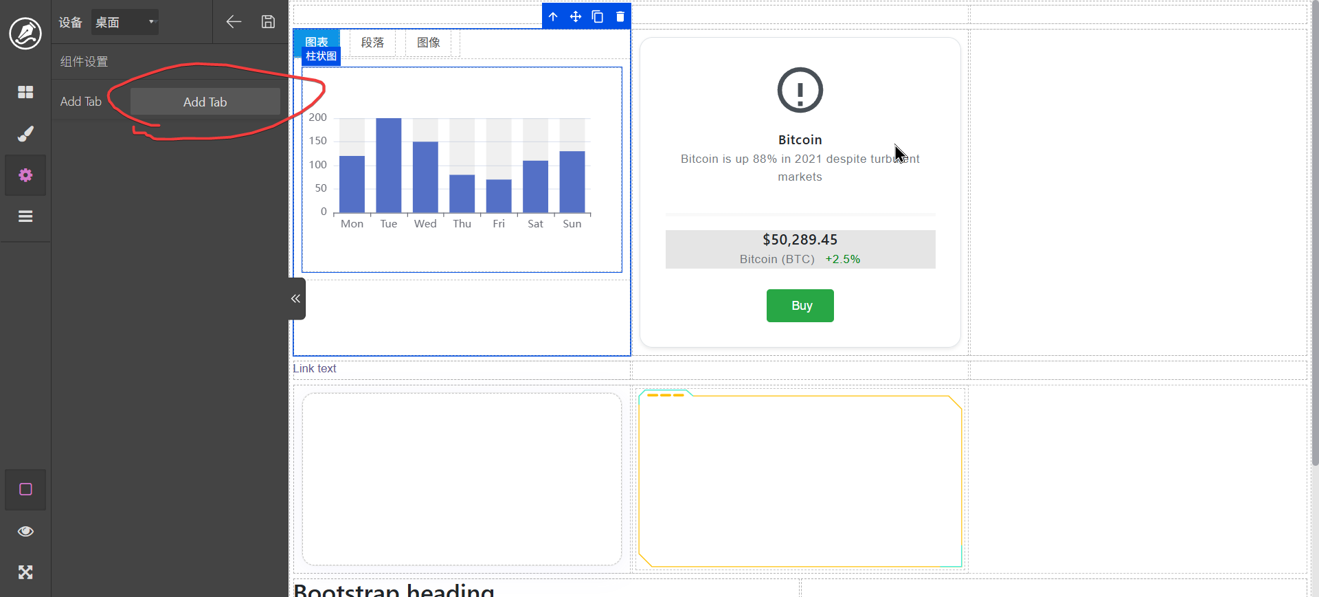 双击文字标签可以进行编辑,content区域可以拖动其它元素