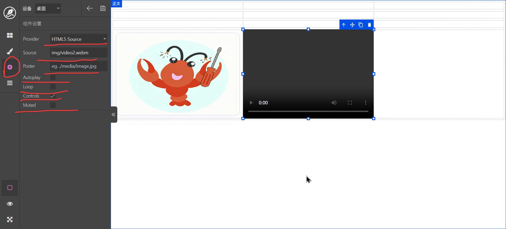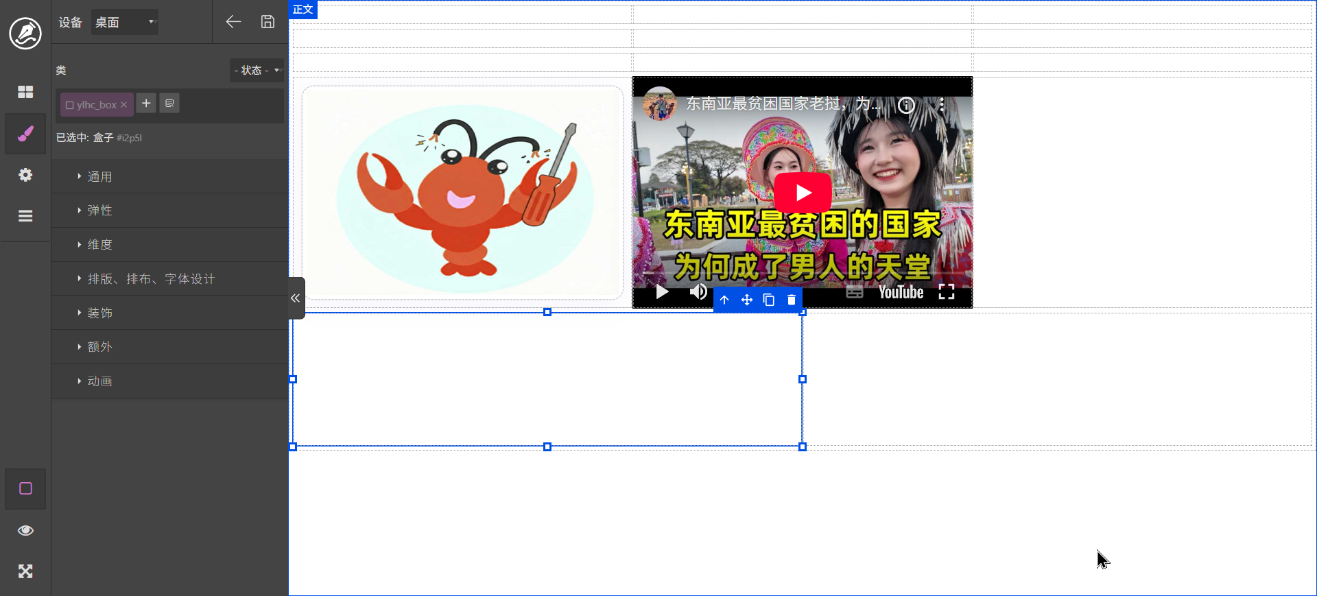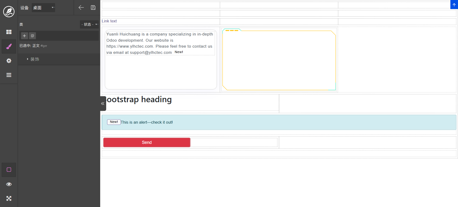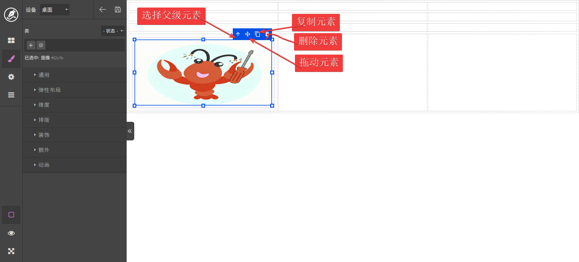 双击文字标签可以进行编辑,content区域可以拖动其它元素