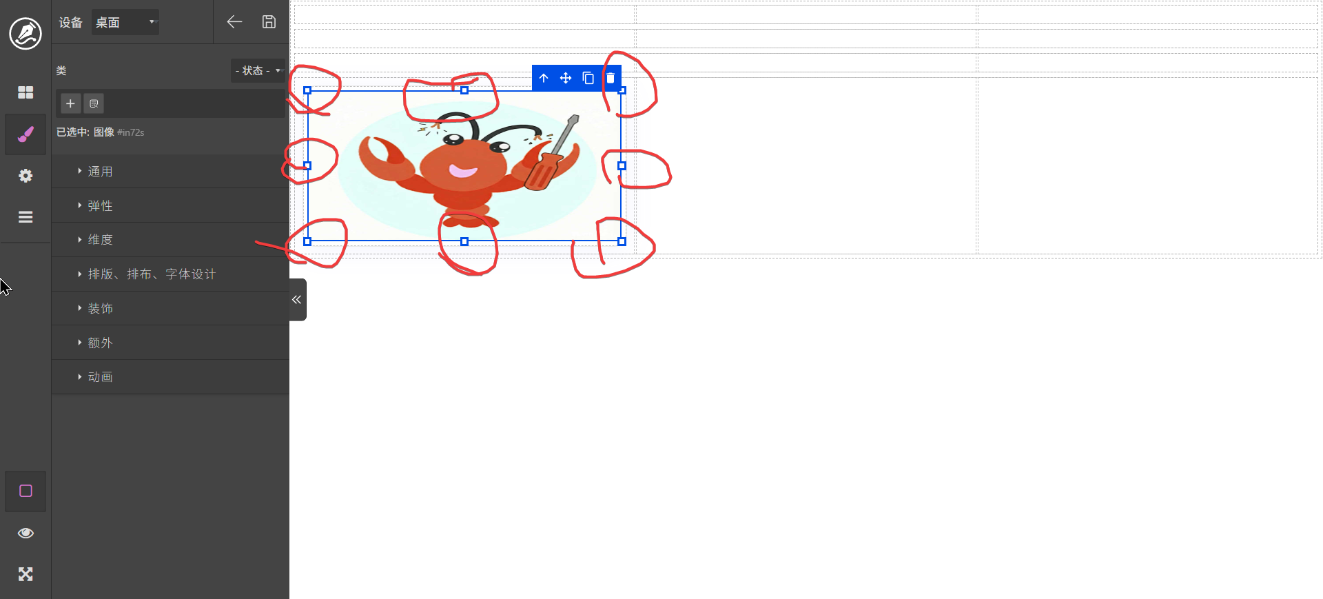 图像选择后可以调整大小,调节手柄