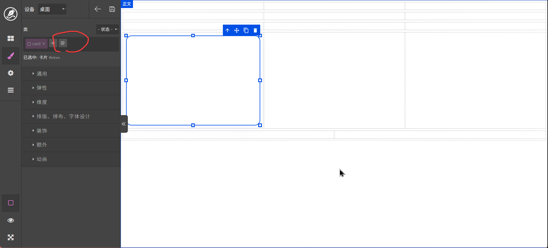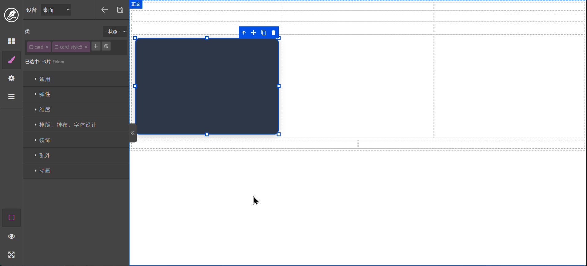 卡片是一个非常重要的元素,用于将区块分开,主要用于布局,拖动到页面以后效果如下