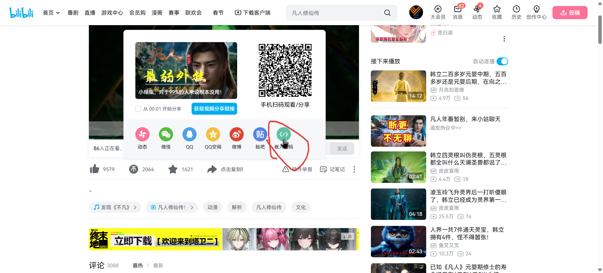 取得嵌入代码以后再提取地址