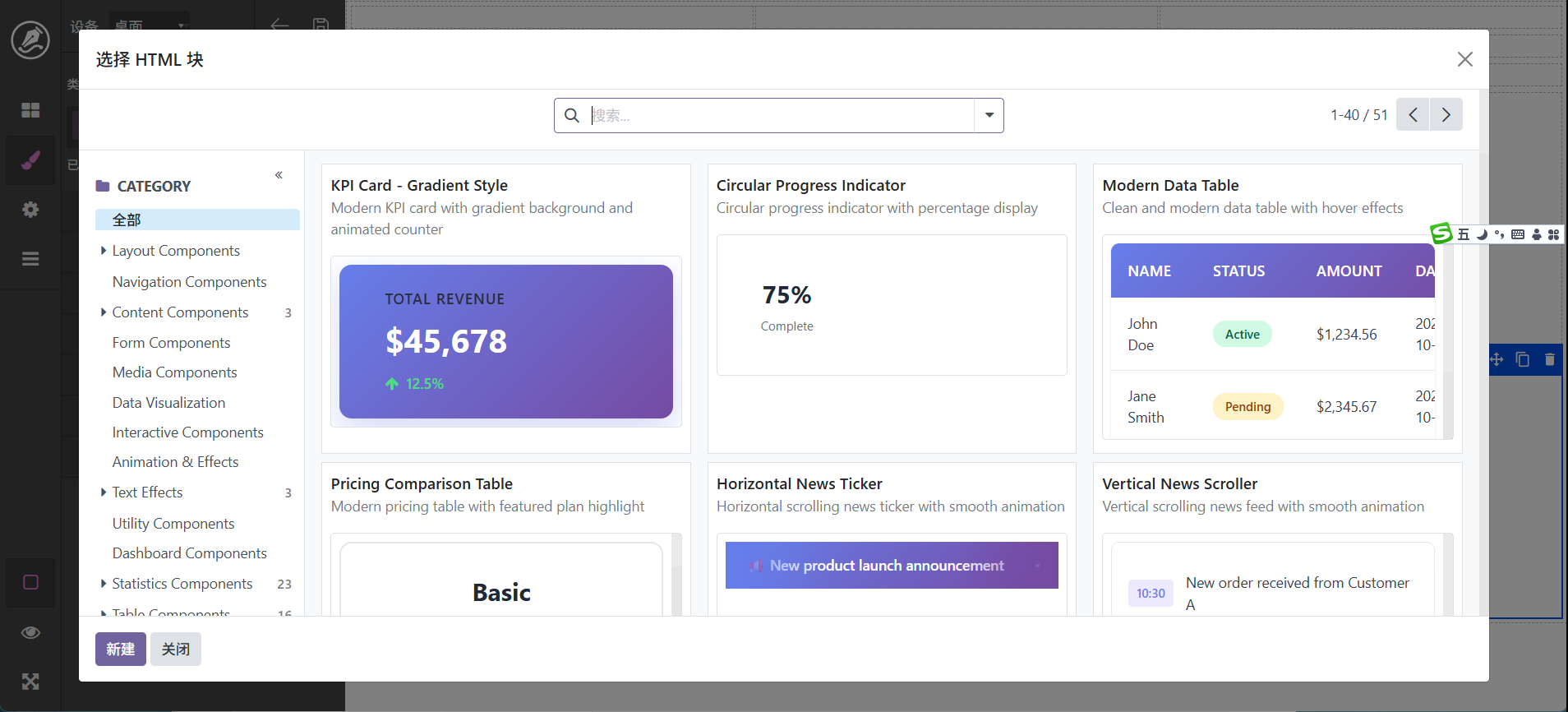 左侧有分类筛选,选择需要插入的区块楚然到看板。html需要配合脚本模块才能完全发挥作用,后续再作深入介绍。