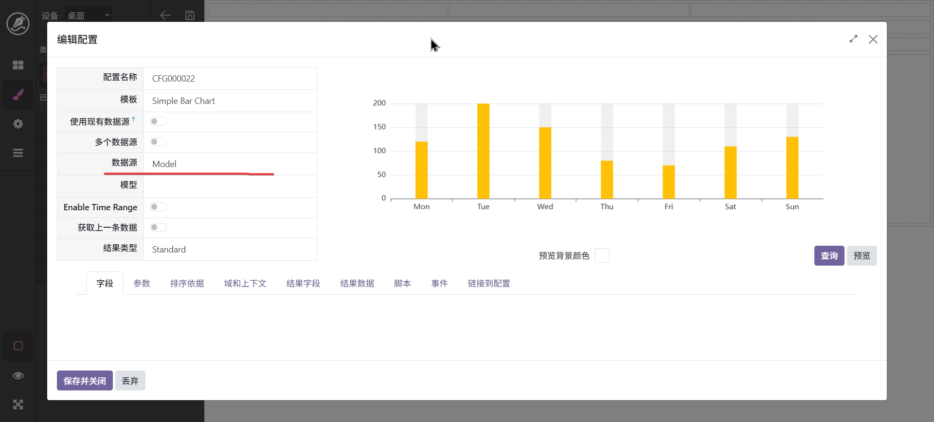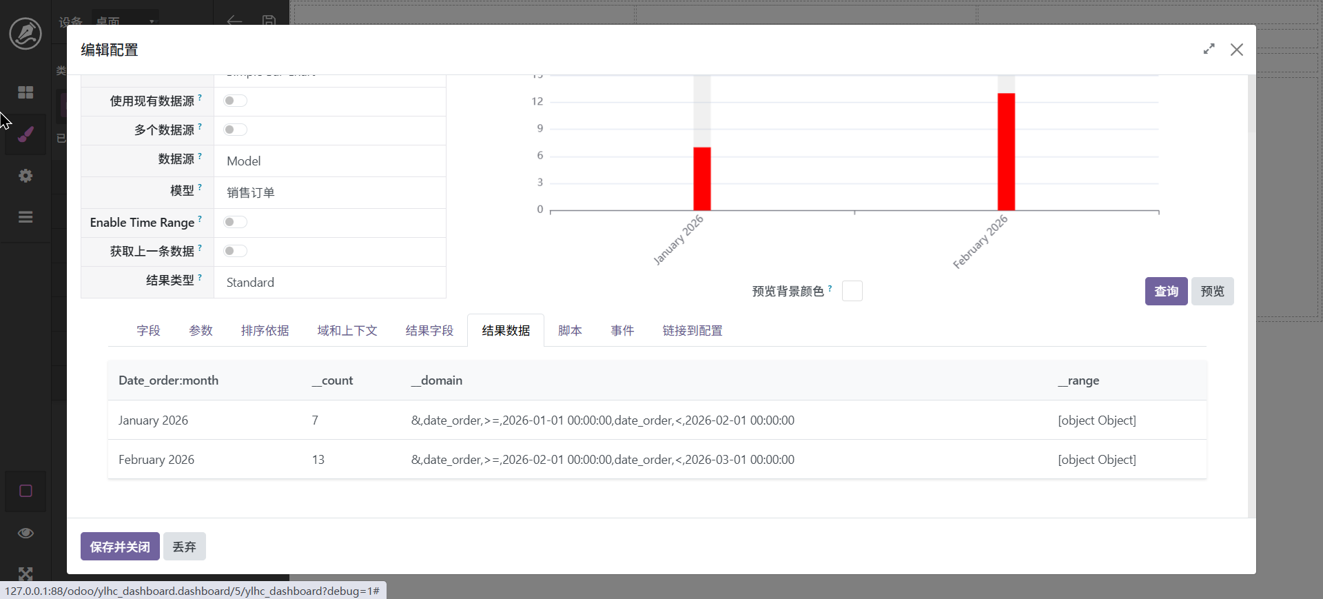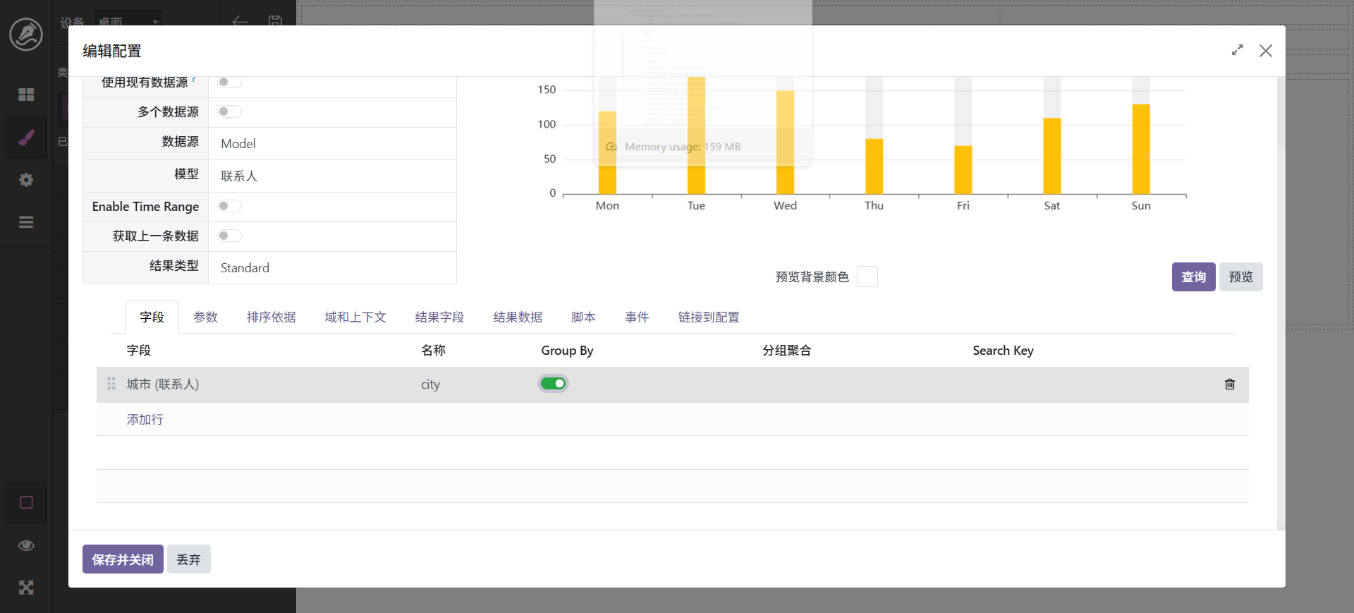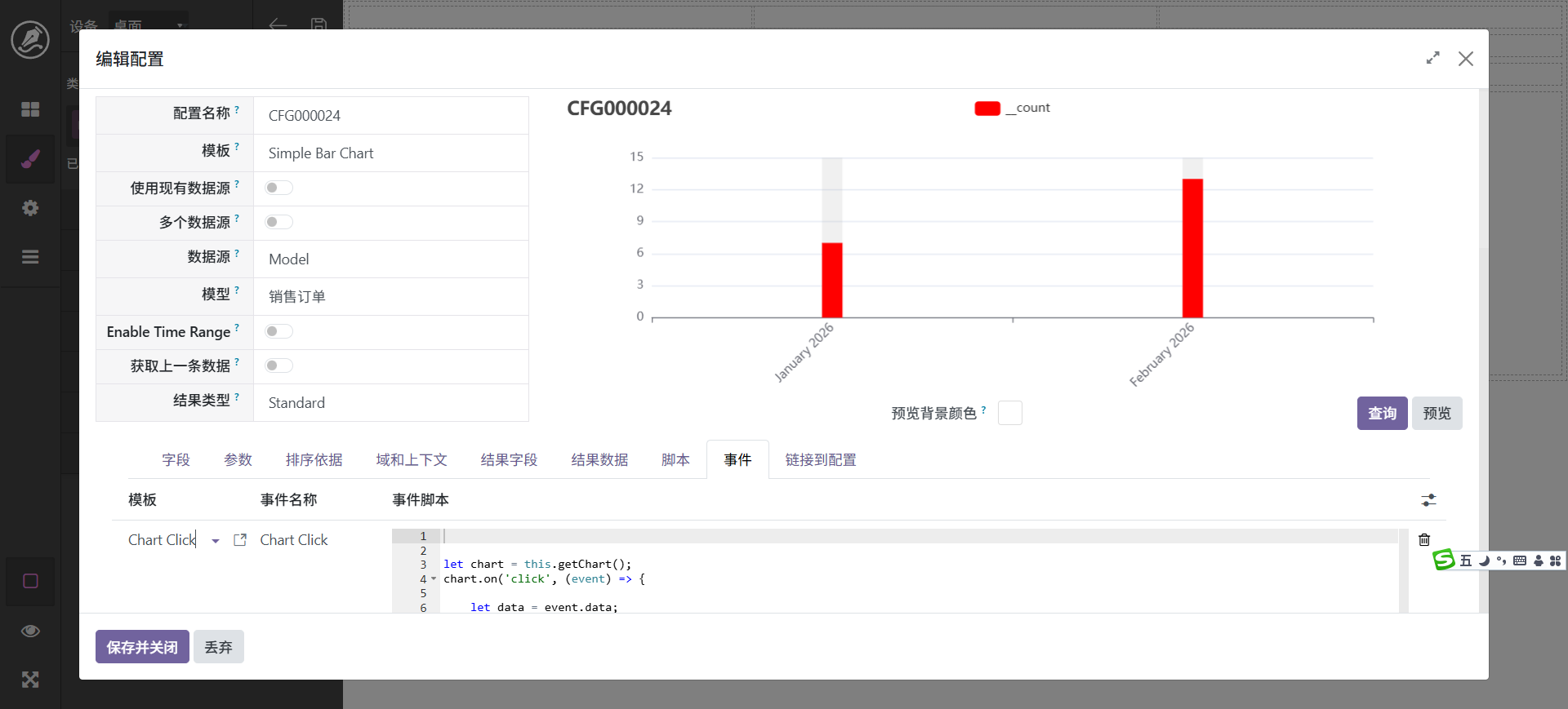 当然,也还可以进行其它调整,最终字段配置中可以设置字段别名,如_count可以显示为数量