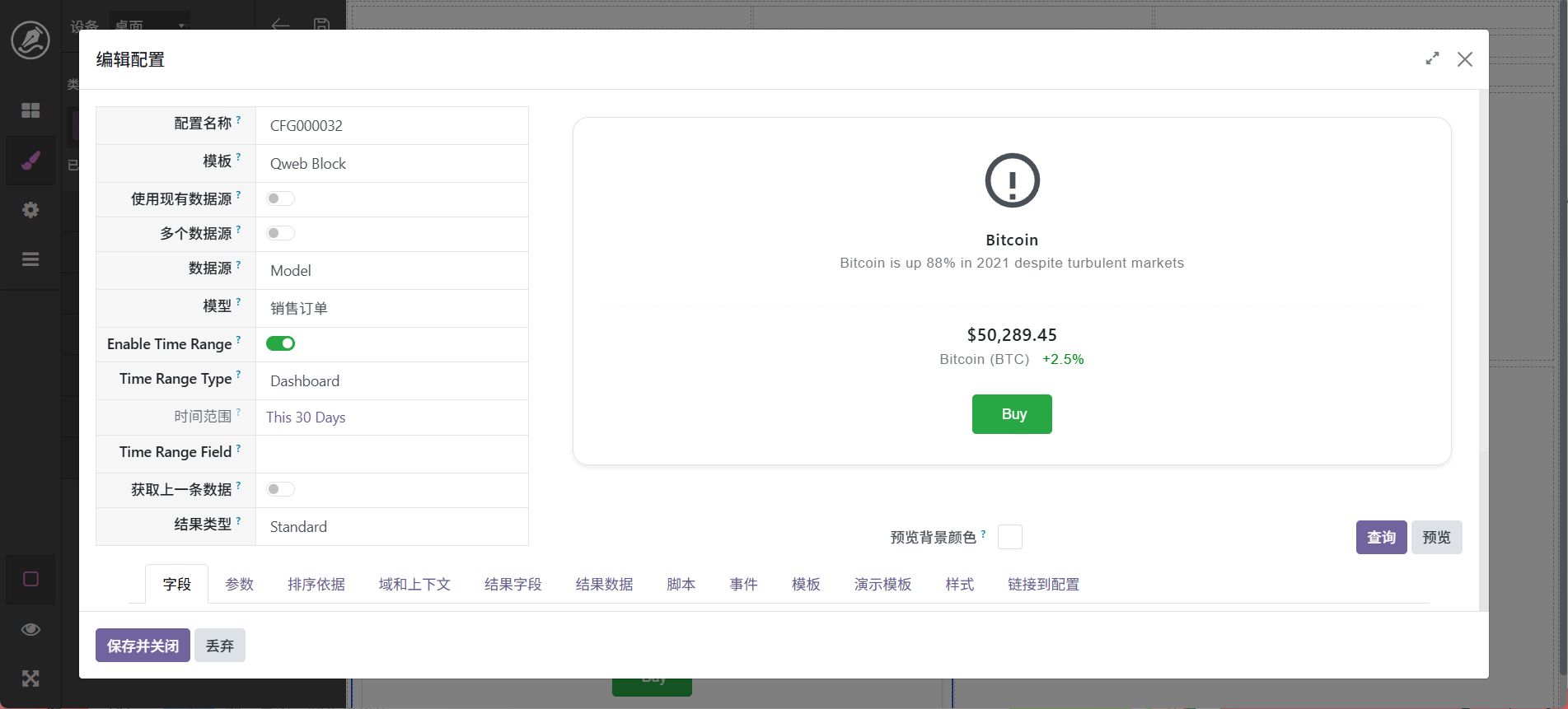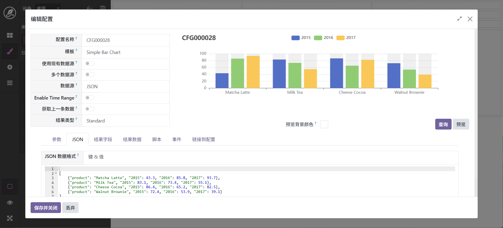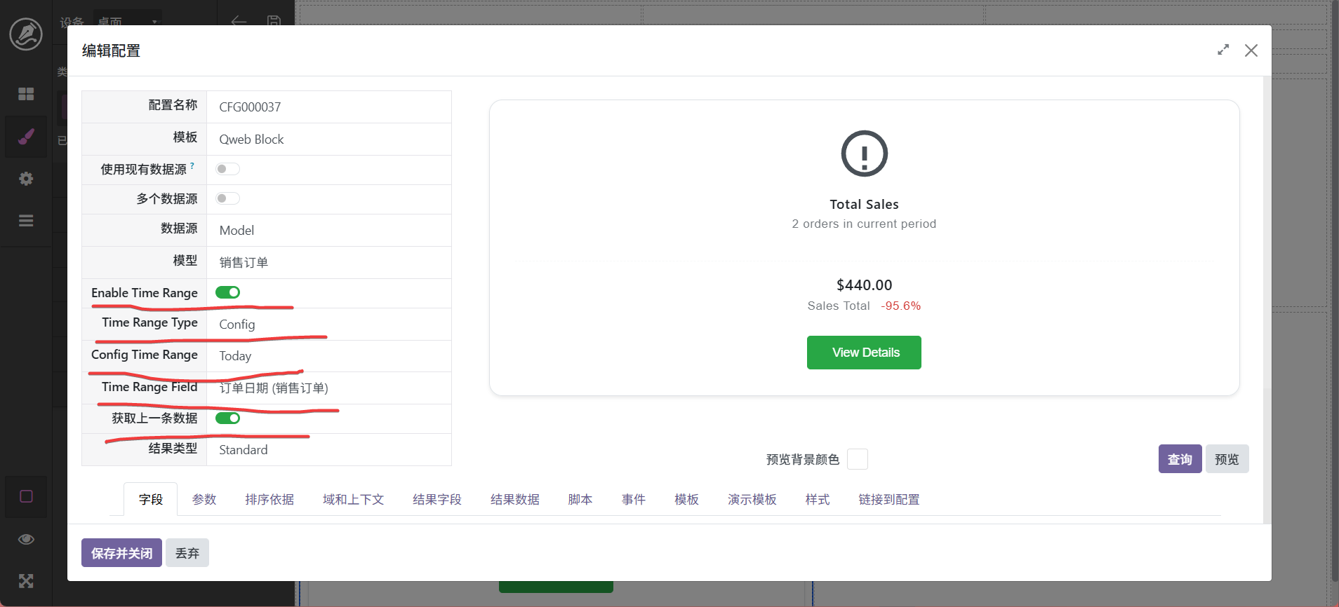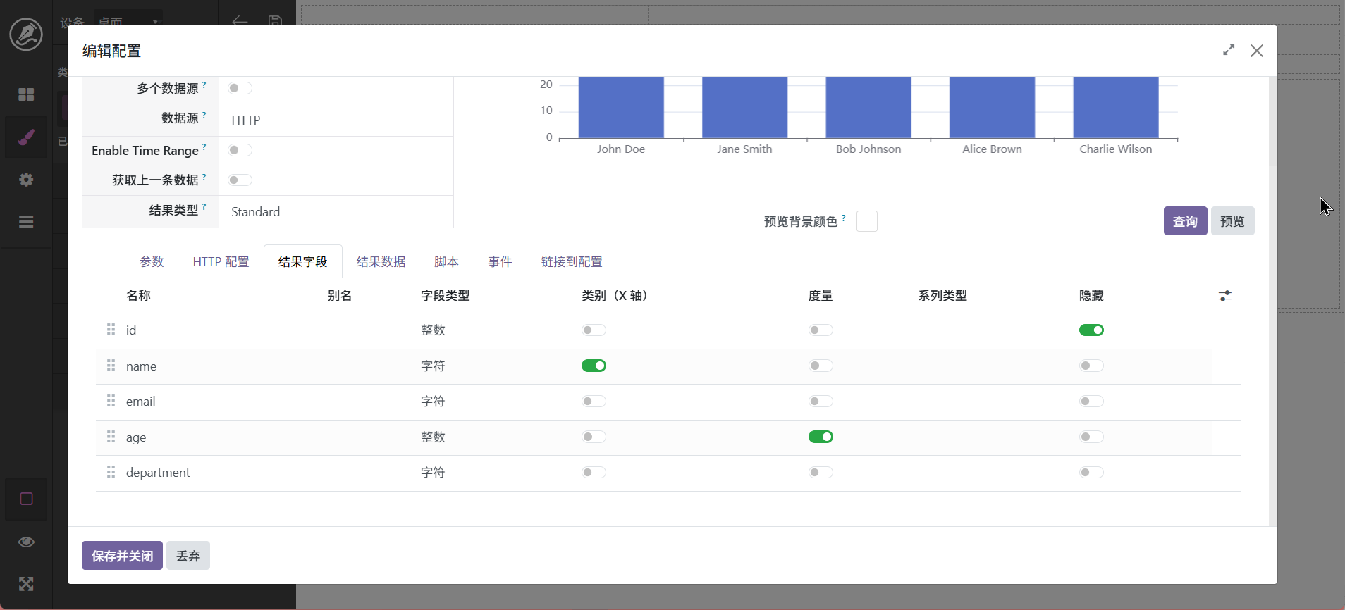 当然,也还可以进行其它调整,最终字段配置中可以设置字段别名,如_count可以显示为数量