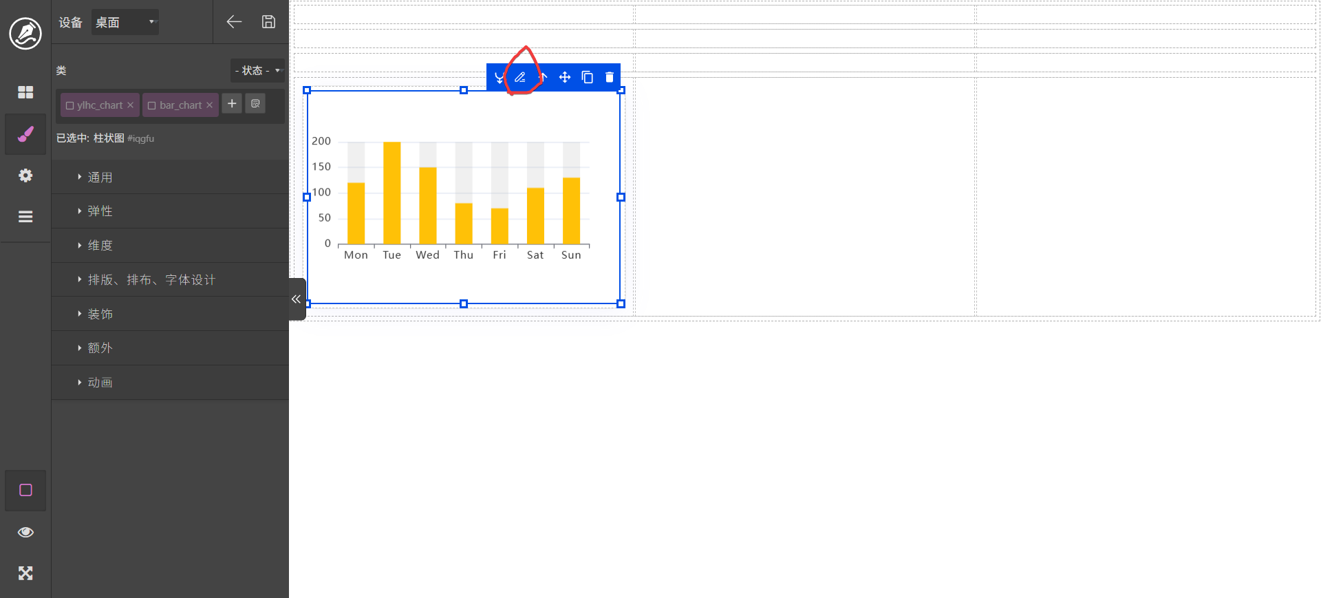 (1)、拖动一个柱图到编辑区中。点击编辑按扭