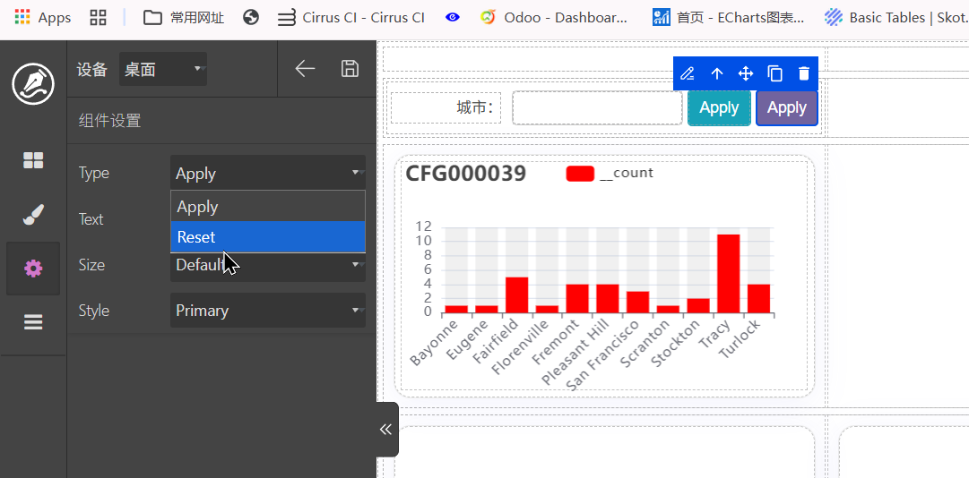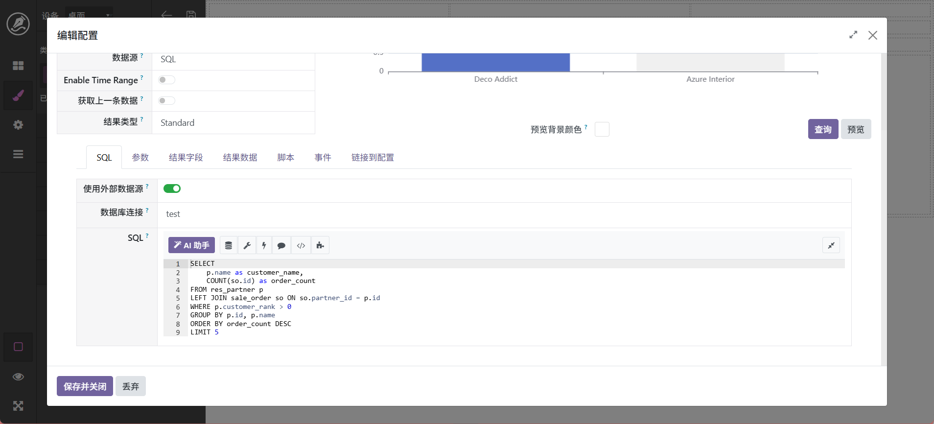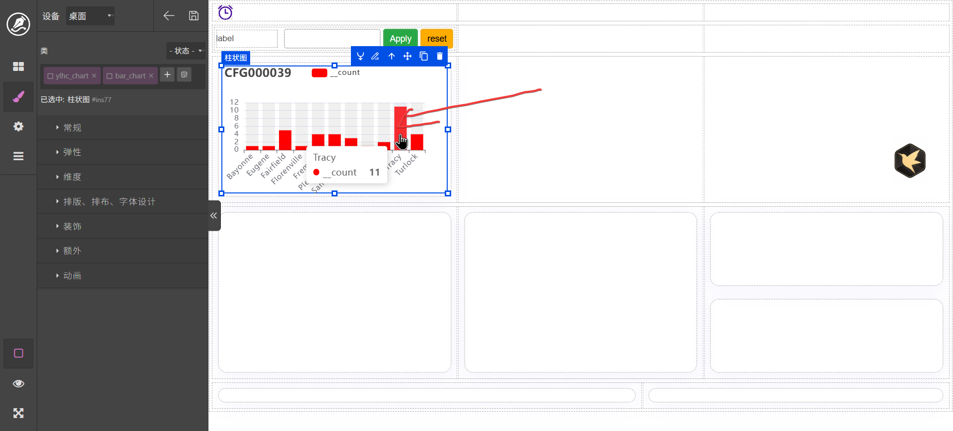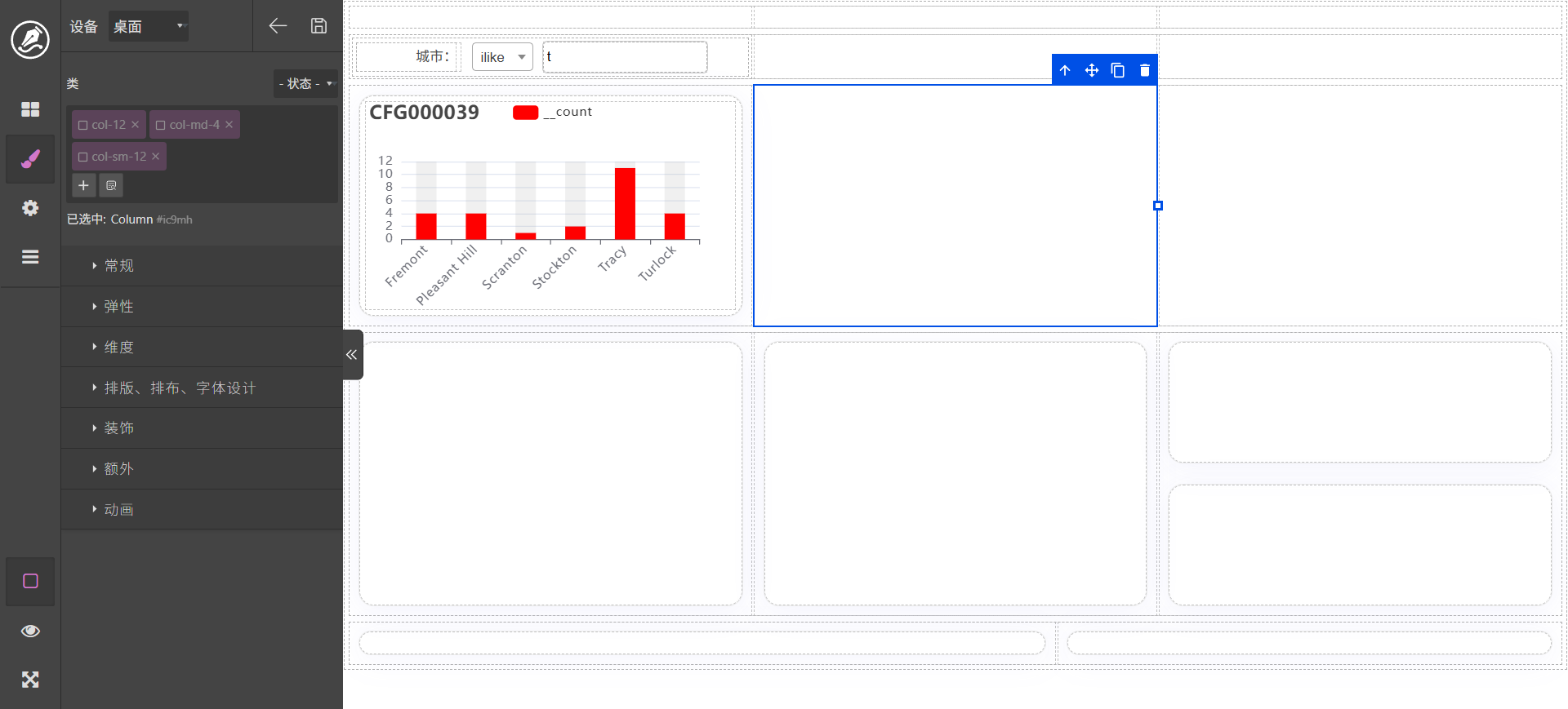 这里以城市为例进行分组。配置完成以后调击查询和预览,界面显示效果如图。如果要进行调整,可以在脚本页面使用ai进行调整,如:
