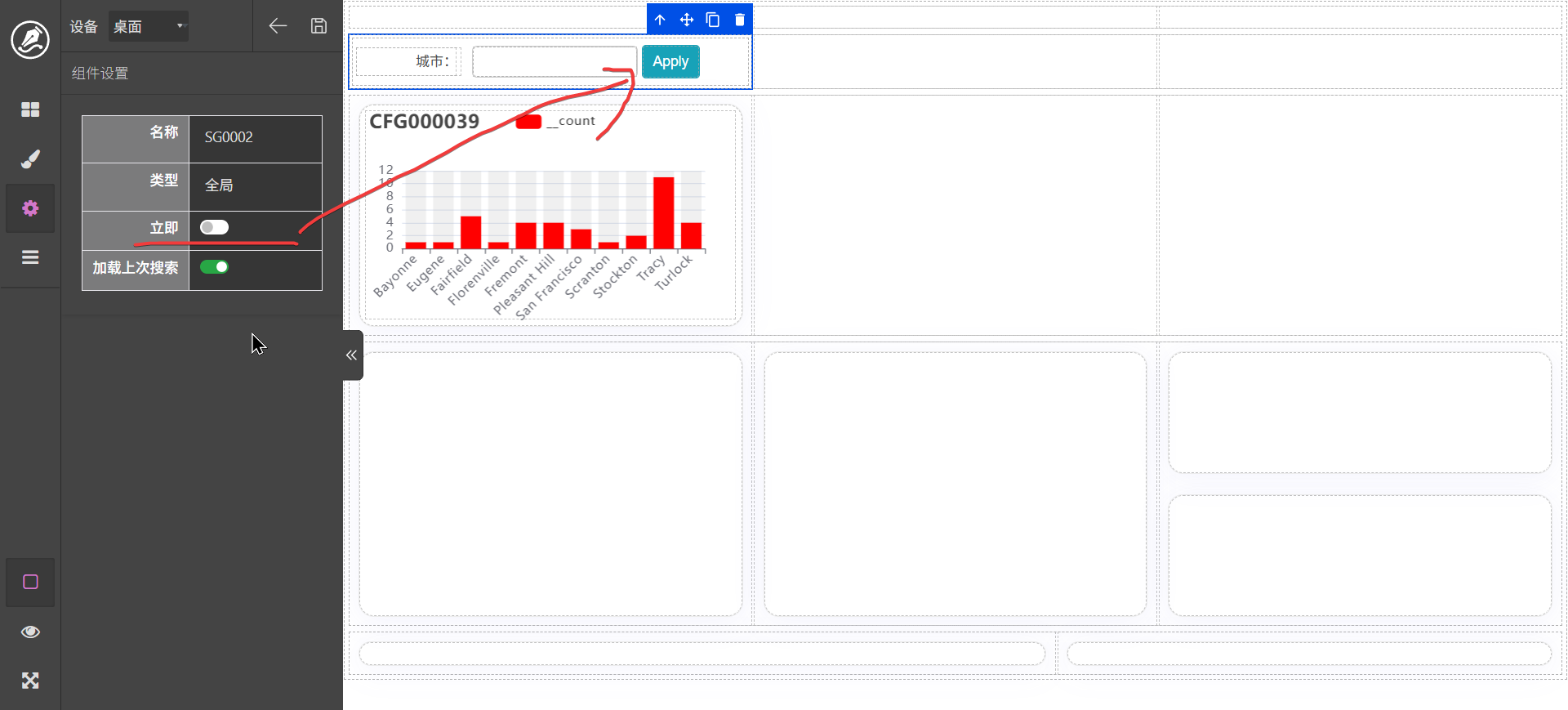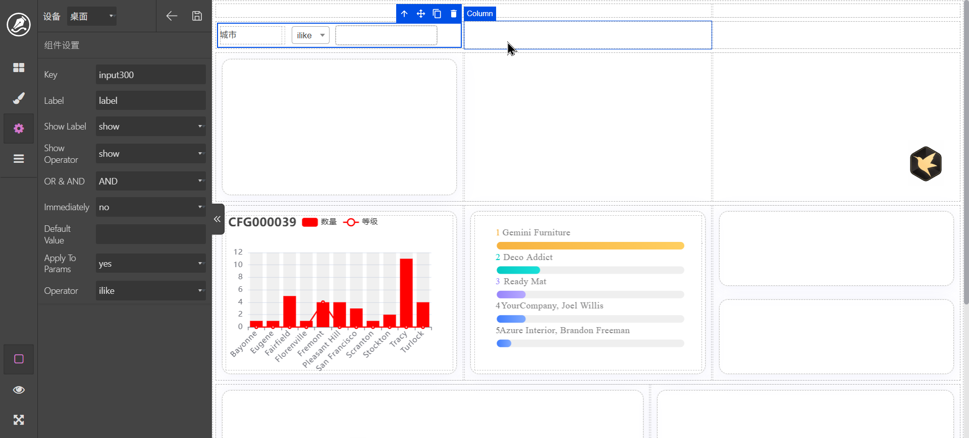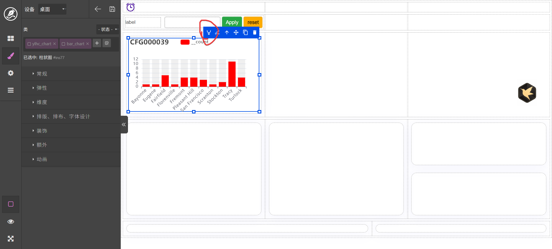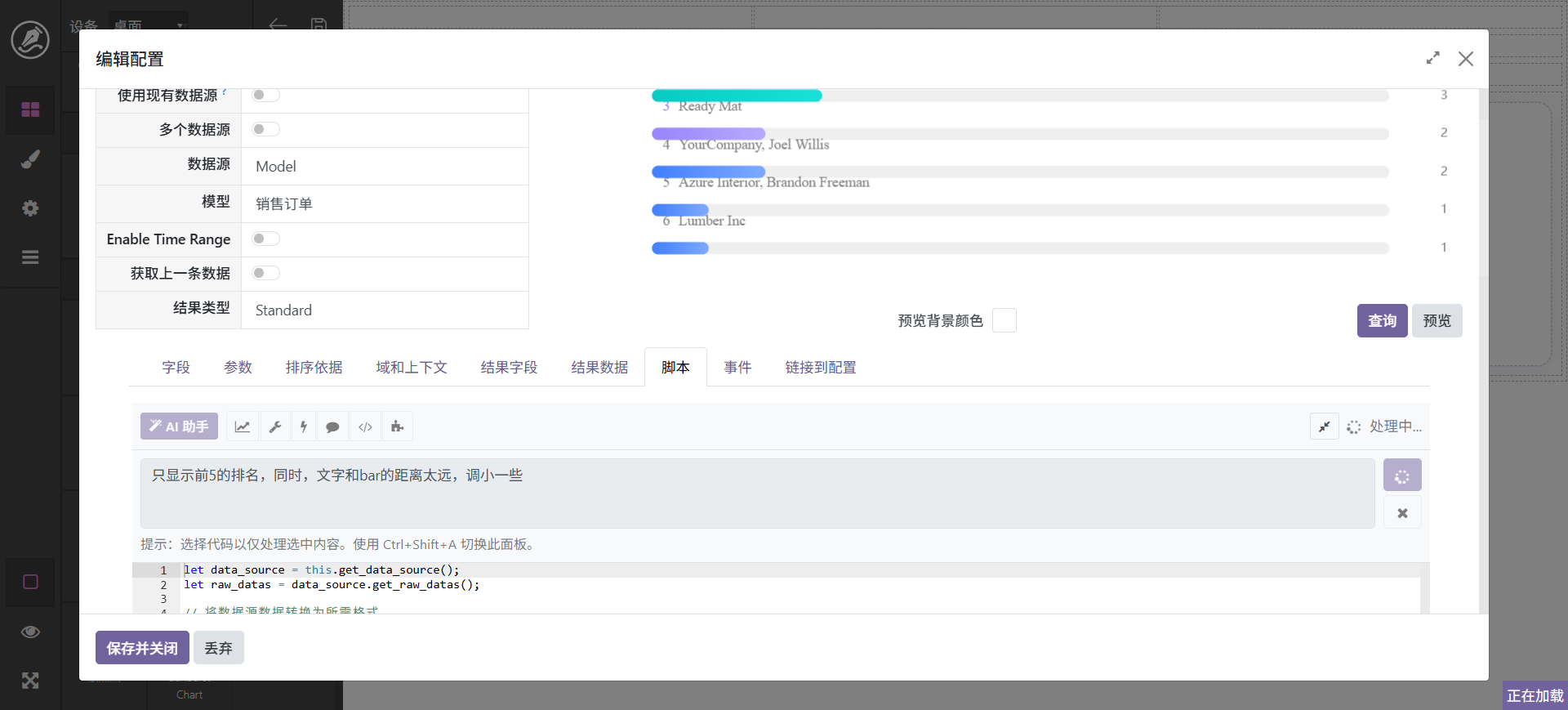 这里以城市为例进行分组。配置完成以后调击查询和预览,界面显示效果如图。如果要进行调整,可以在脚本页面使用ai进行调整,如: