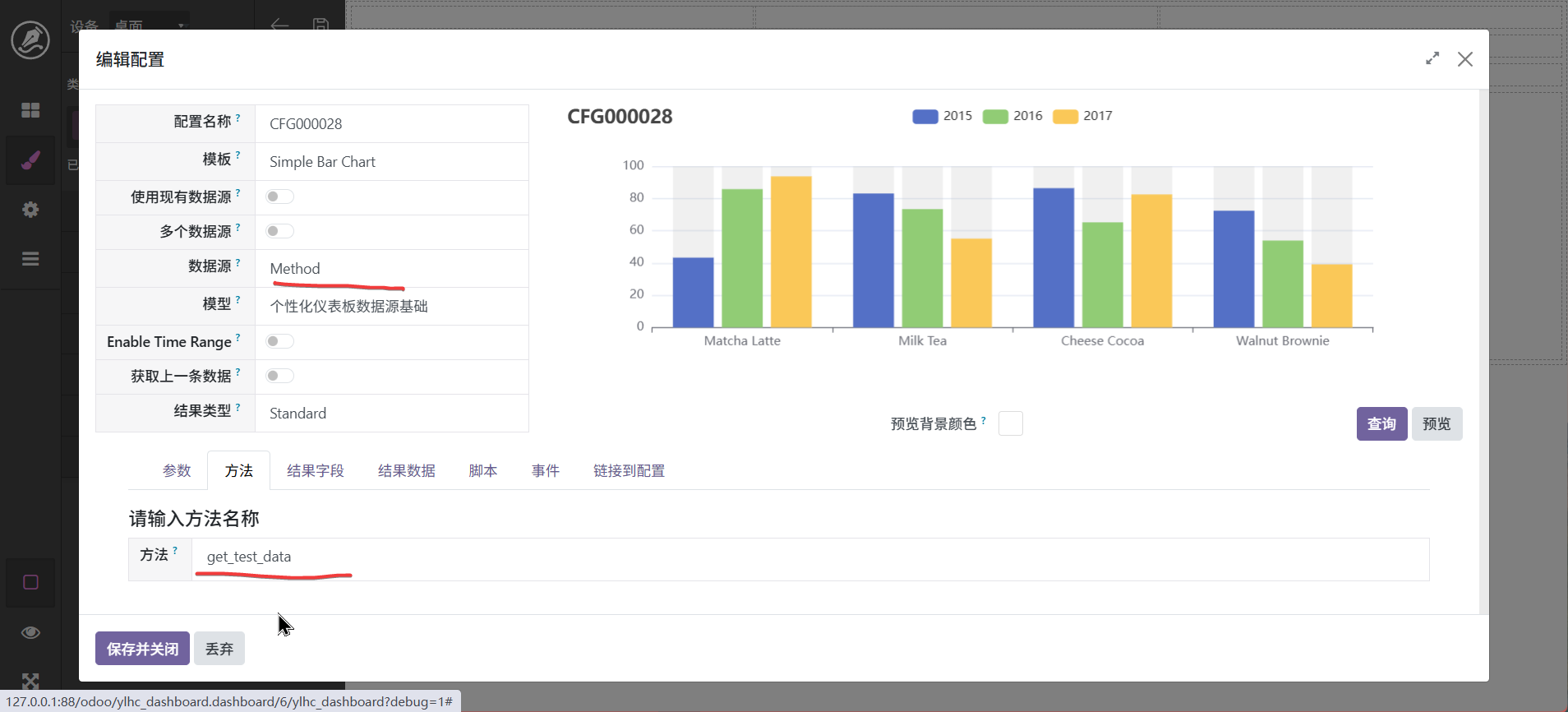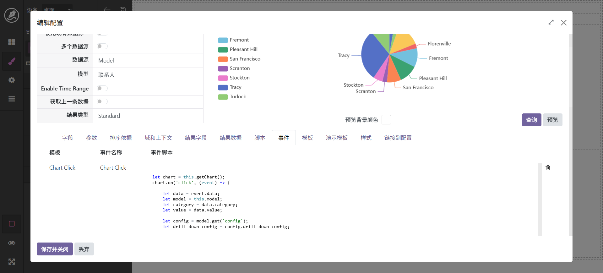 设置好了以后需要对数据源进行配置,选中图表,进入编辑