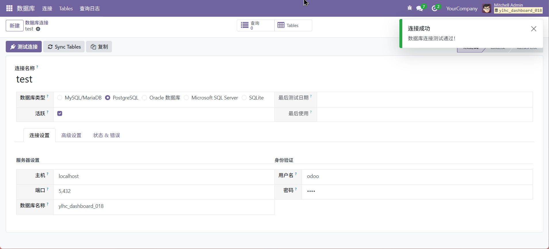 点击测试可以确定是否能正常链接
