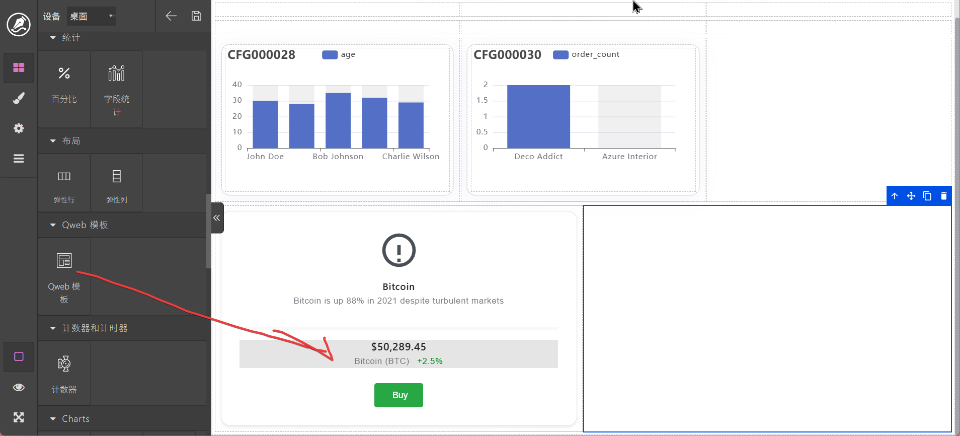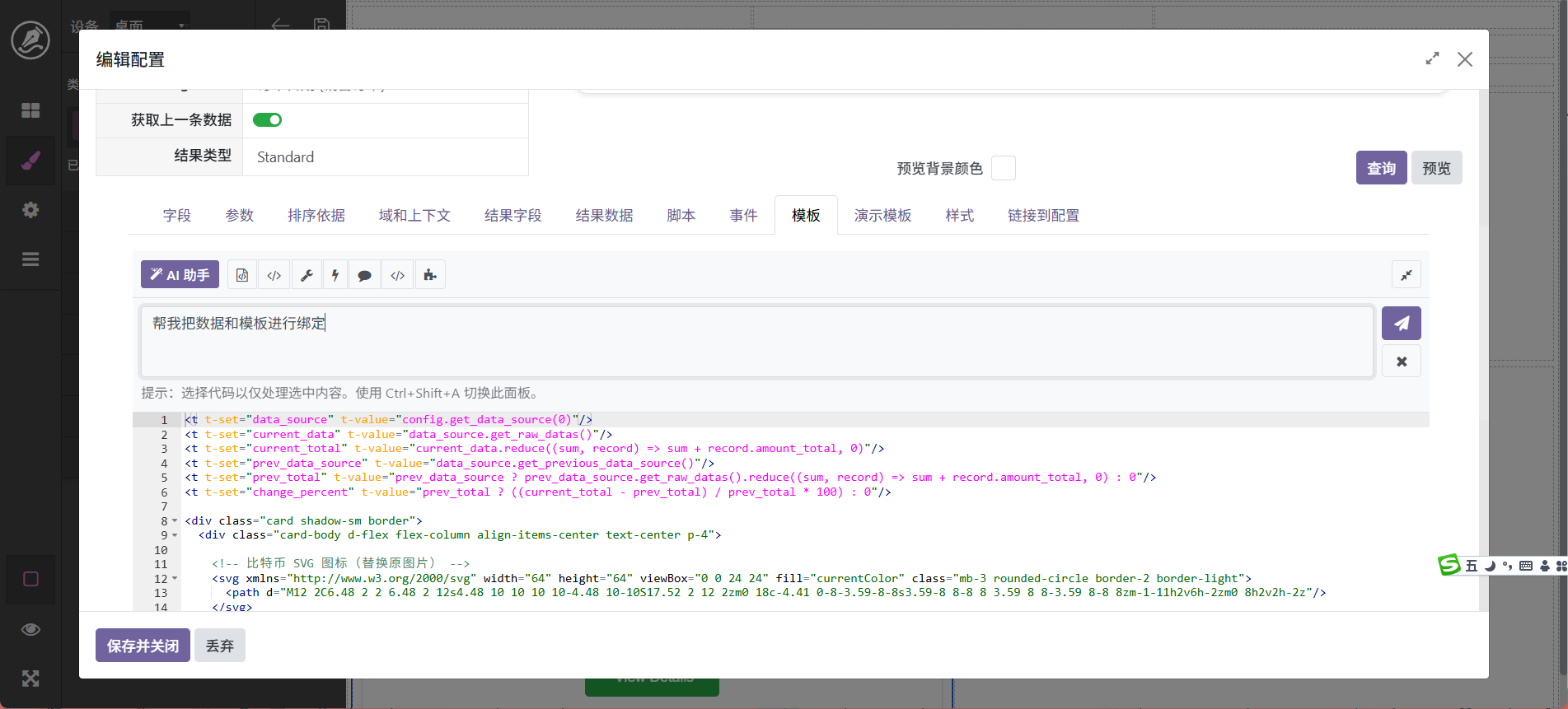 这里ai会自动对数据进行绑定。当然,也可以自行修改qweb,代码如下