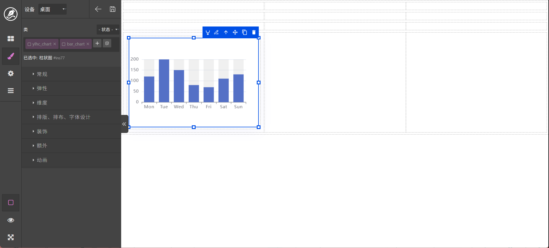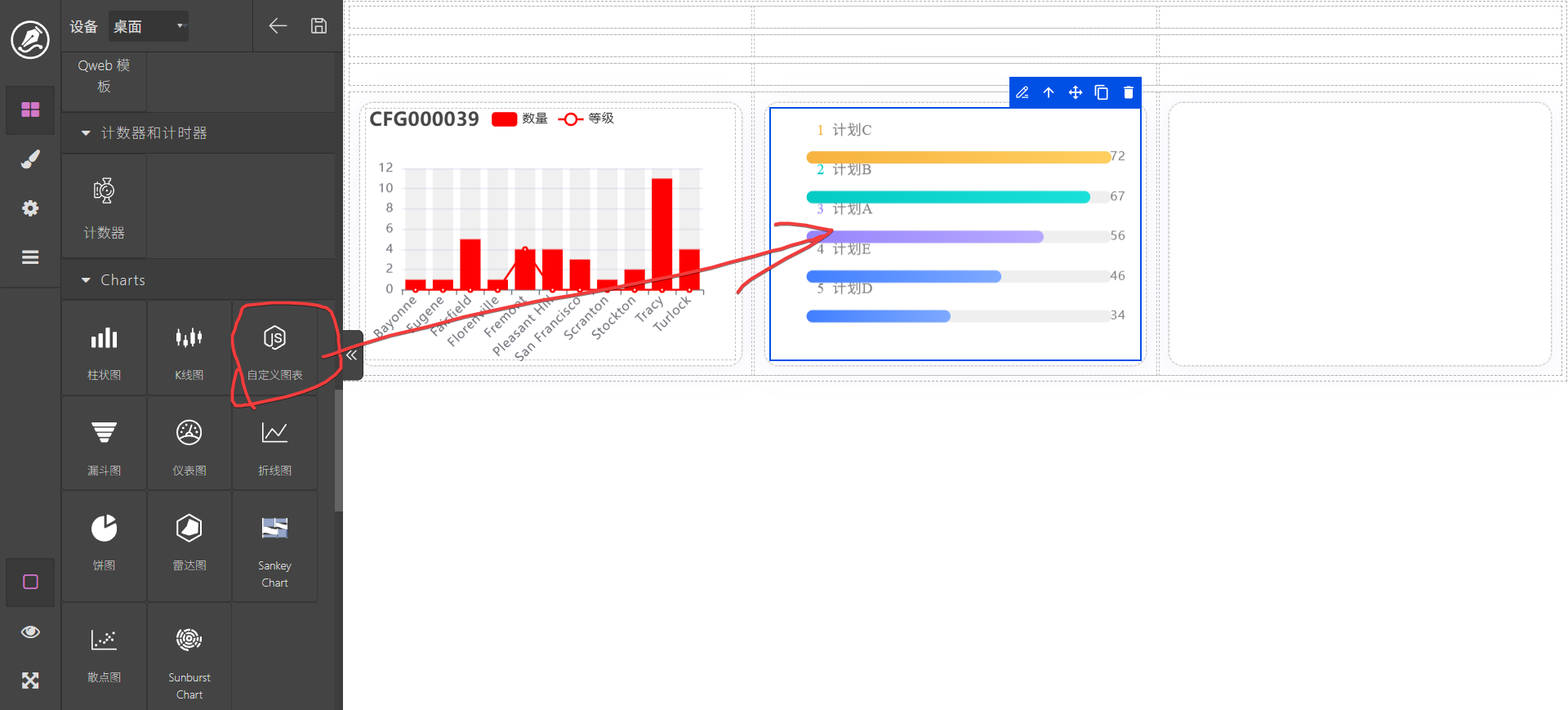 (1)、拖动一个自定义图表到编辑区。