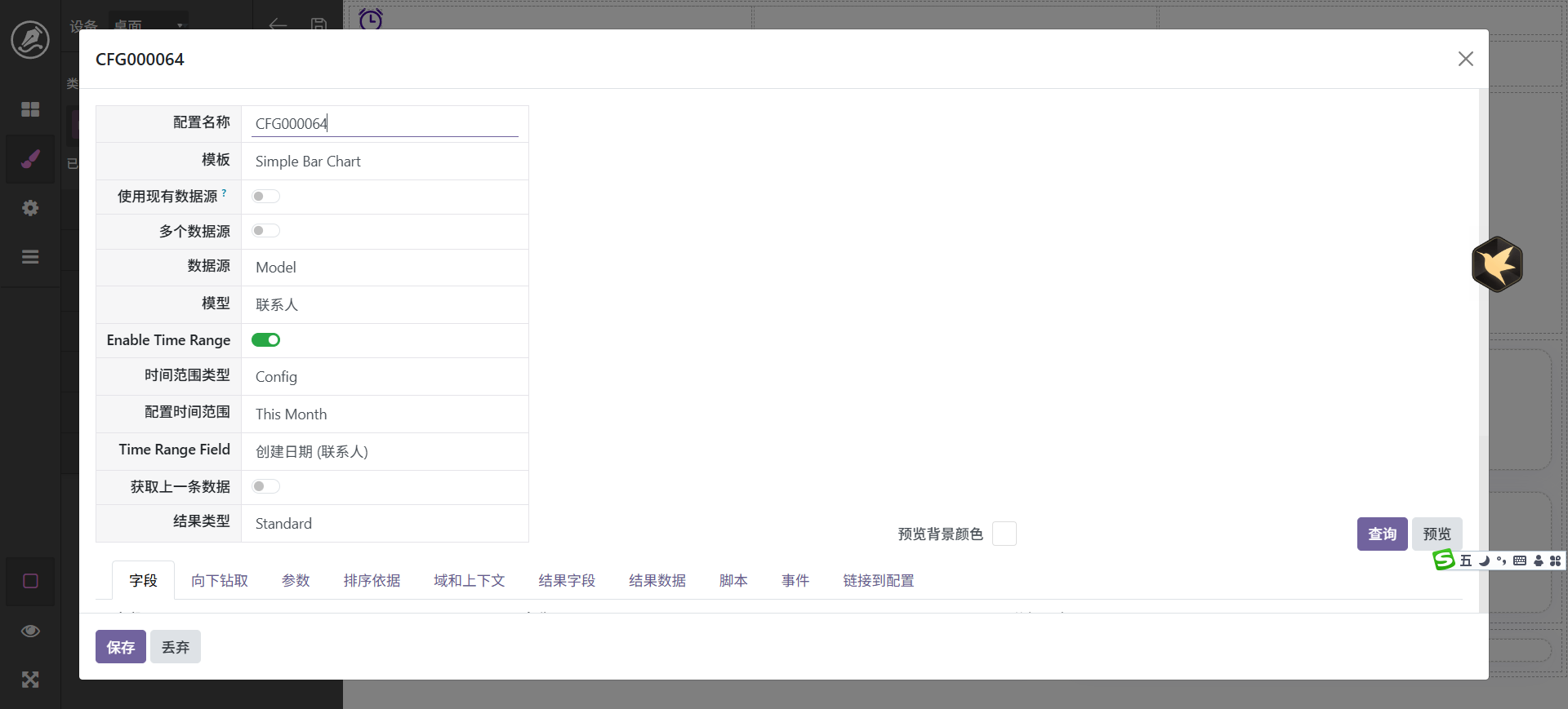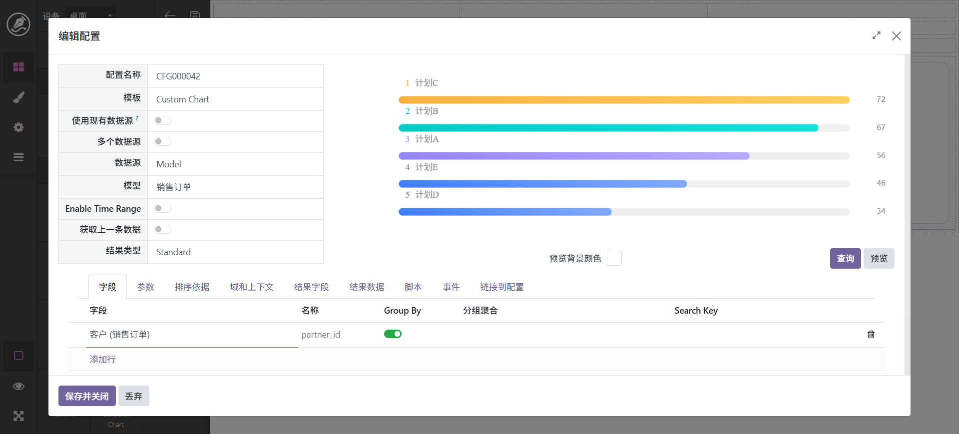 这里统计客户订单排名,字段选择客户并分组,点击查询,字段配置如下: