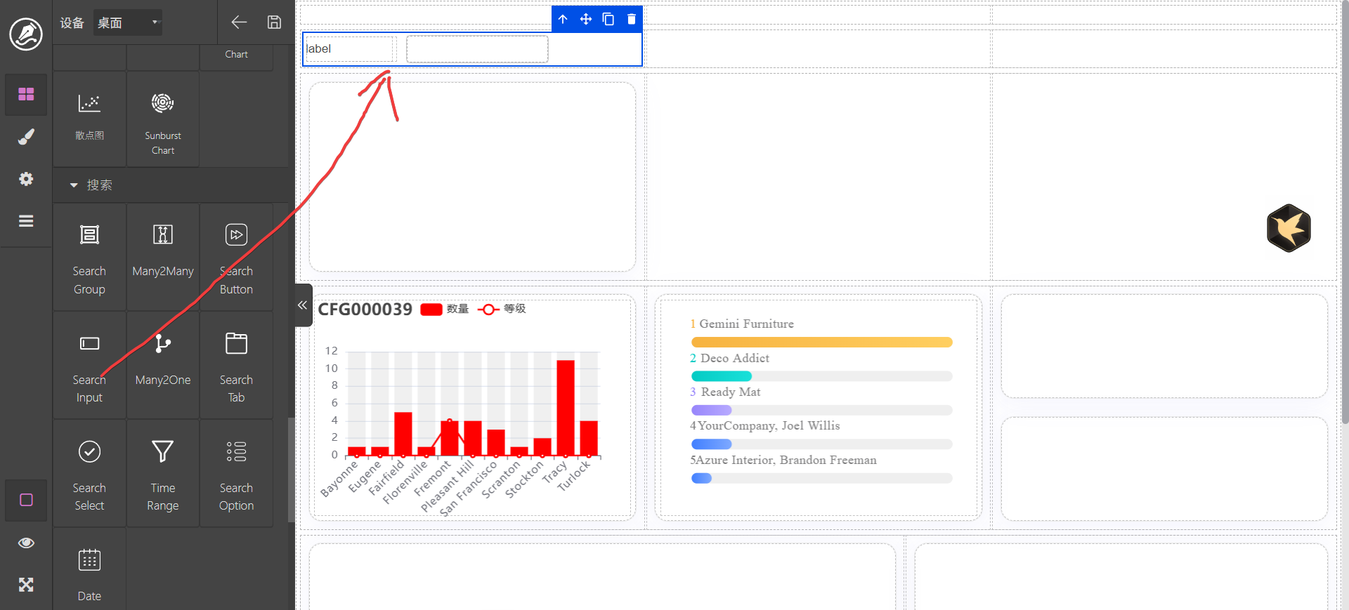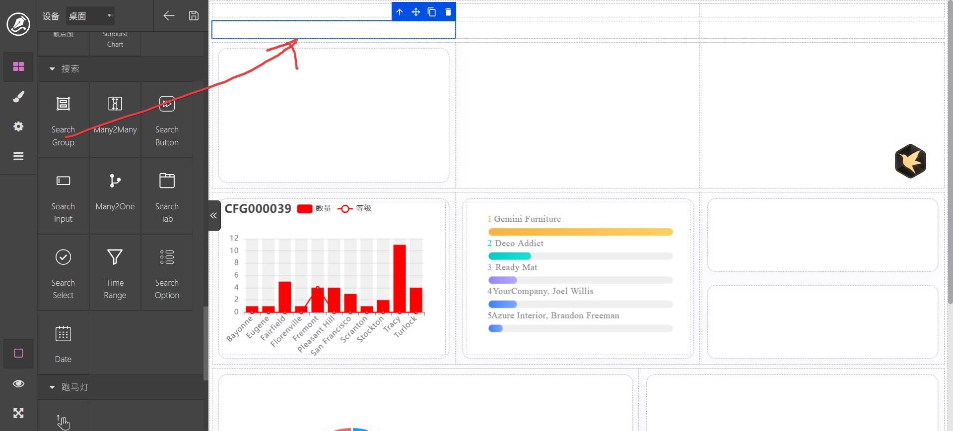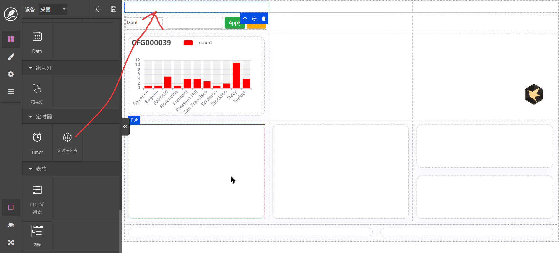 设计一个看板之前实际上要做的事情就是进行布局,前边我们已经讲过容器、行、栏及卡片,主要通过这几个进行布局。布局主要通过添加行
