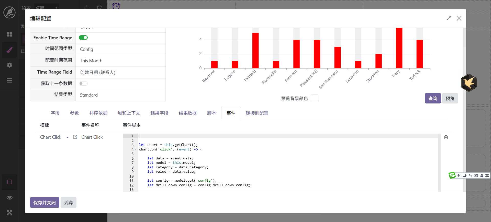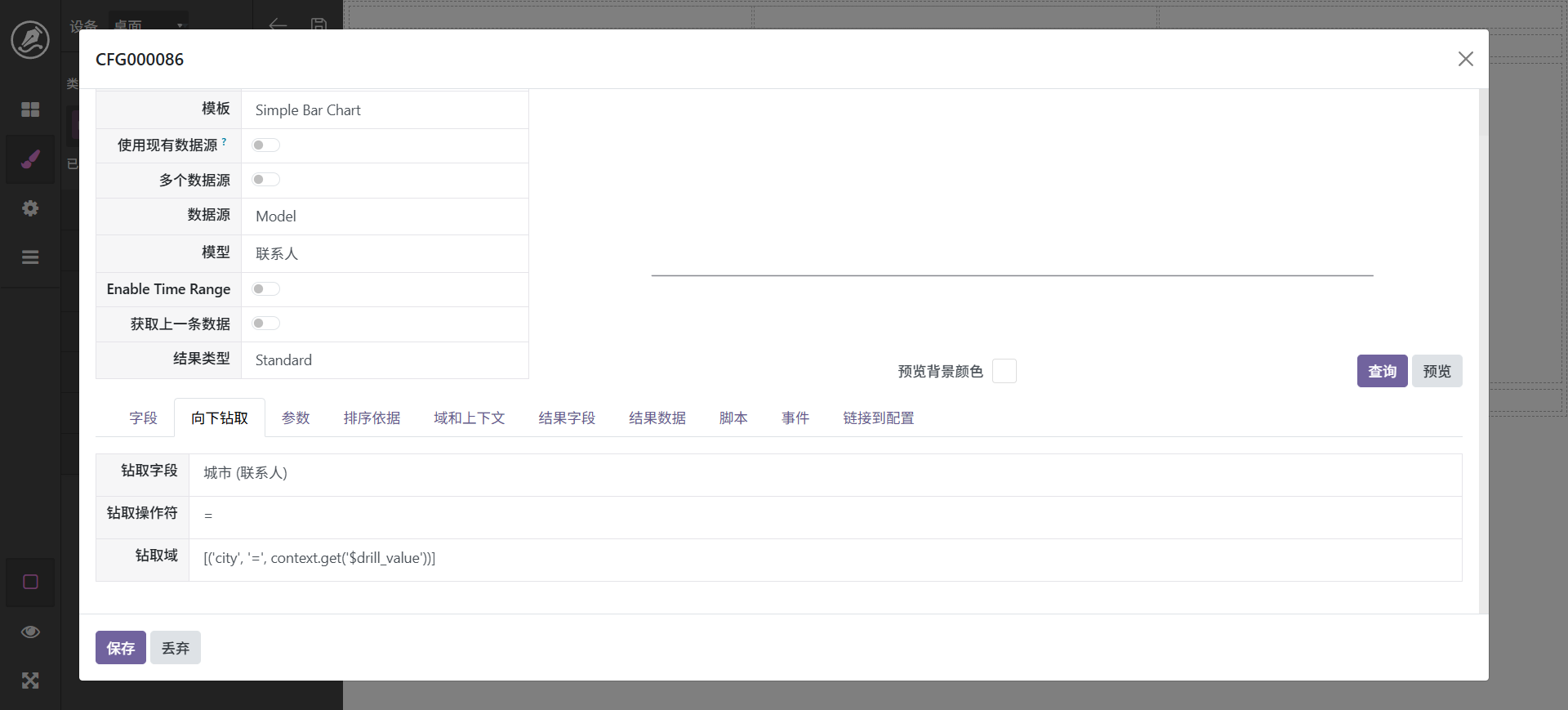 下钻也是个常见功能,如元素点击时跳转到相应的记录。看板中有两种下钻方式