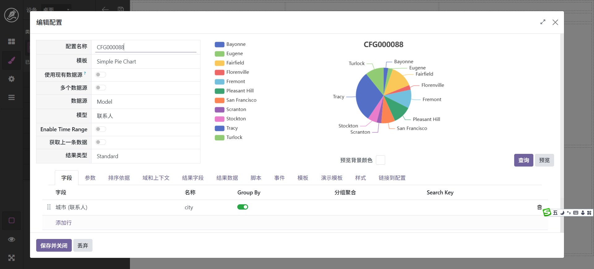 此处我们使用这个配置,key设置为city。文本样式为靠右。