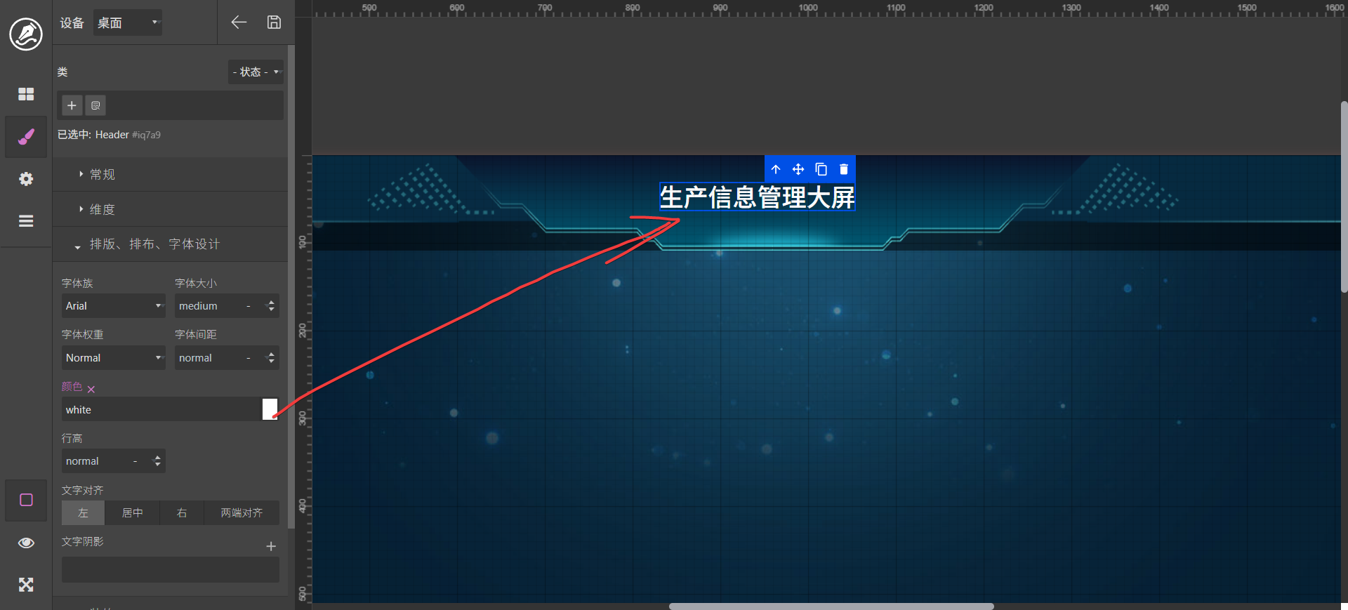 此时效果如下,拖入一个标题到界面中,并设置为白色